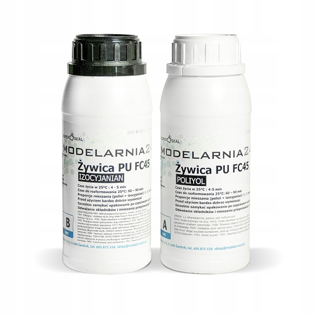 Предметом аукціону є 1 кг (0,5 кг поліолу + 0,5 кг ізоціанат) поліуретанової ливарної смоли FC45. товщини, ідеально підходить для заповнення різними наповнювачами. Він ідеально підходить для формування деталей прототипів, статуеток, статуеток, масштабних моделей, декоративних або архітектурних елементів, виробничих елементів, форм або ручок, рибальського обладнання, наприклад, воблерів тощо... Смола RUNTOP FC45 ідеально підходить для лиття в силіконові форми з конденсаційних силіконів такі як MM911, MM918, MM922, MM928, MM940, а також доповнення, такі як XIAMETER 4234-T4 або XIAMETER 4250-S Kit Green.