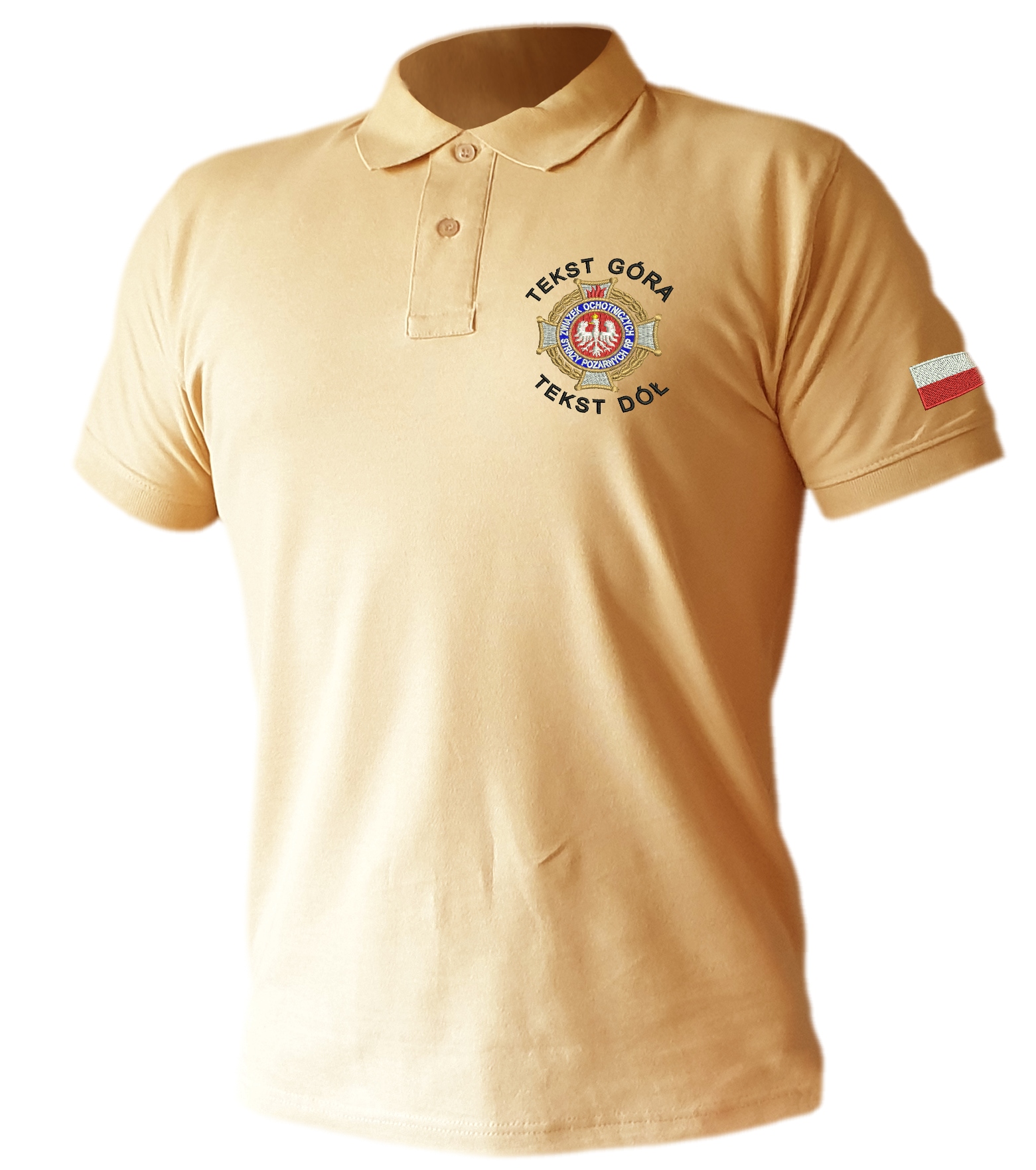 Футболка-поло з вишитим логотипом профспілки з назвою вашого підрозділу, прапорцями на рукавах та захисним написом на спині.