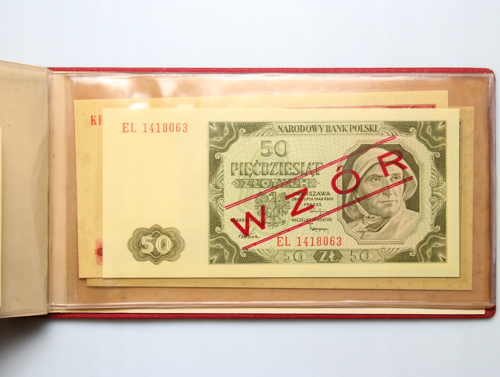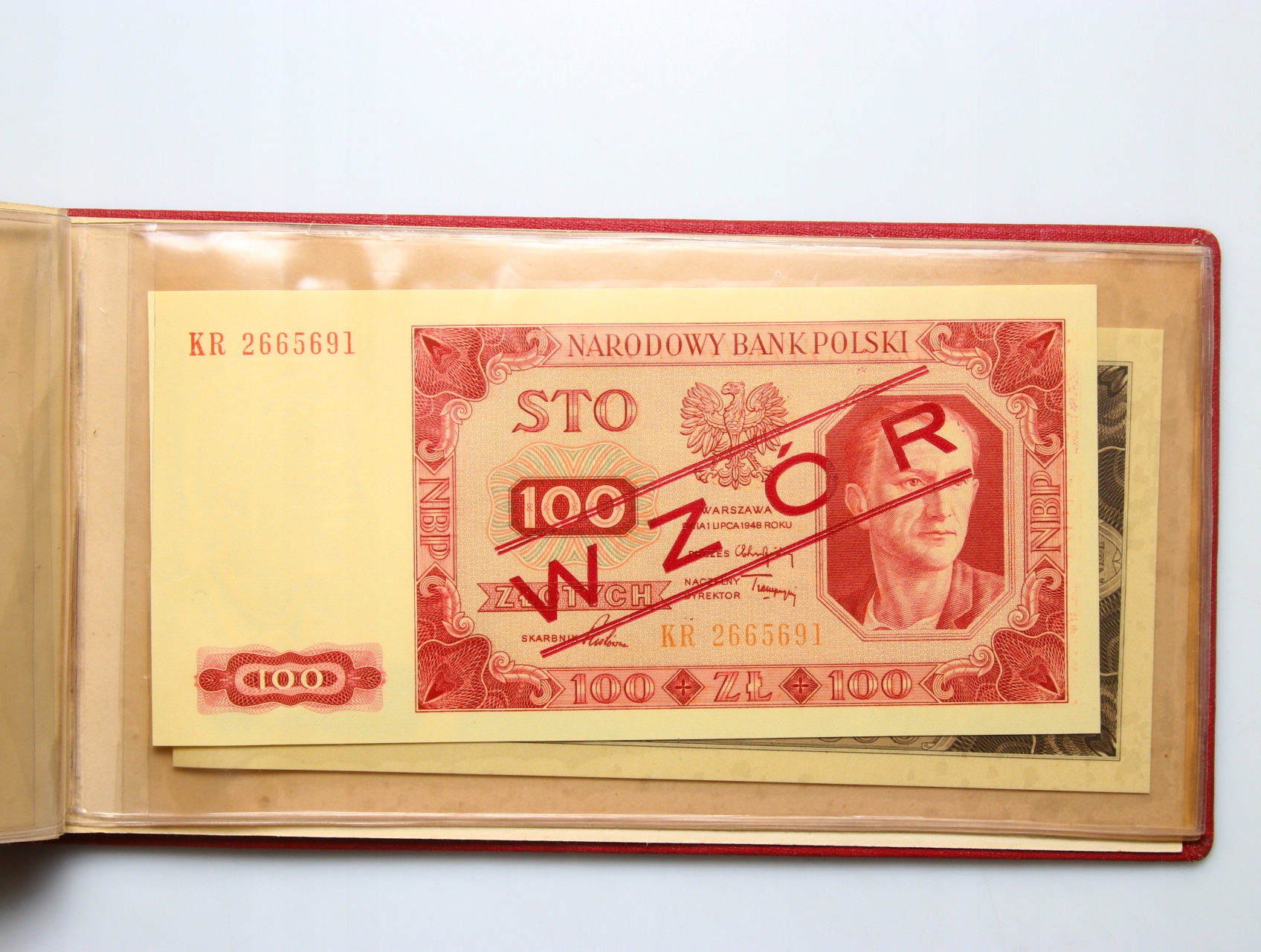 Польща - ВИЗЕРУНКИ ПОЛЬСЬКИХ БАНКНОТ 1944 1965 НАБІР 5 ВЗІЗУНКІВ + АЛЬБОМ