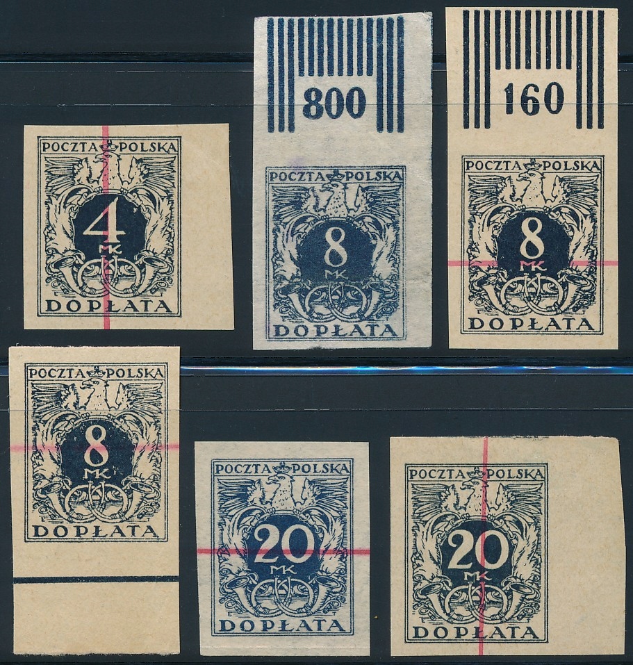 Польща 1921 р. Видання субсидійних серій невердругуваних тестів марок із різновидами кольору та паперу !!!
