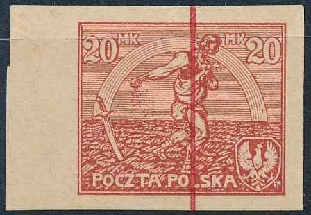 Польща 1921 р. Siewca 20 Marek Non -зворотній тест на штамп, надрукований червоним !!!