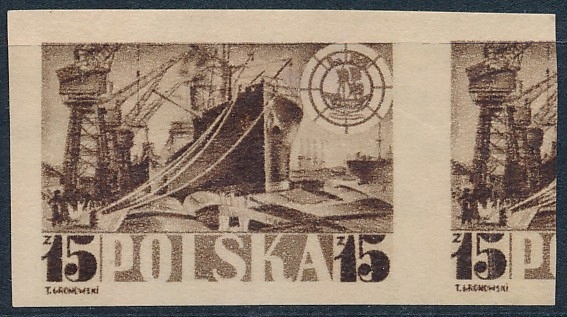 Польща 1948 р. Морський фестиваль з 15 Zlotys невердіненого тесту штампу, надрукованого в коричневому кольорі, на середньому вершковому папері !!!