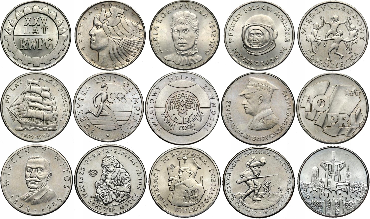 Польща PRL - КОМПЛЕКТ - 15 монет 1974-1990 - ПАМ'ЯТНІ монети