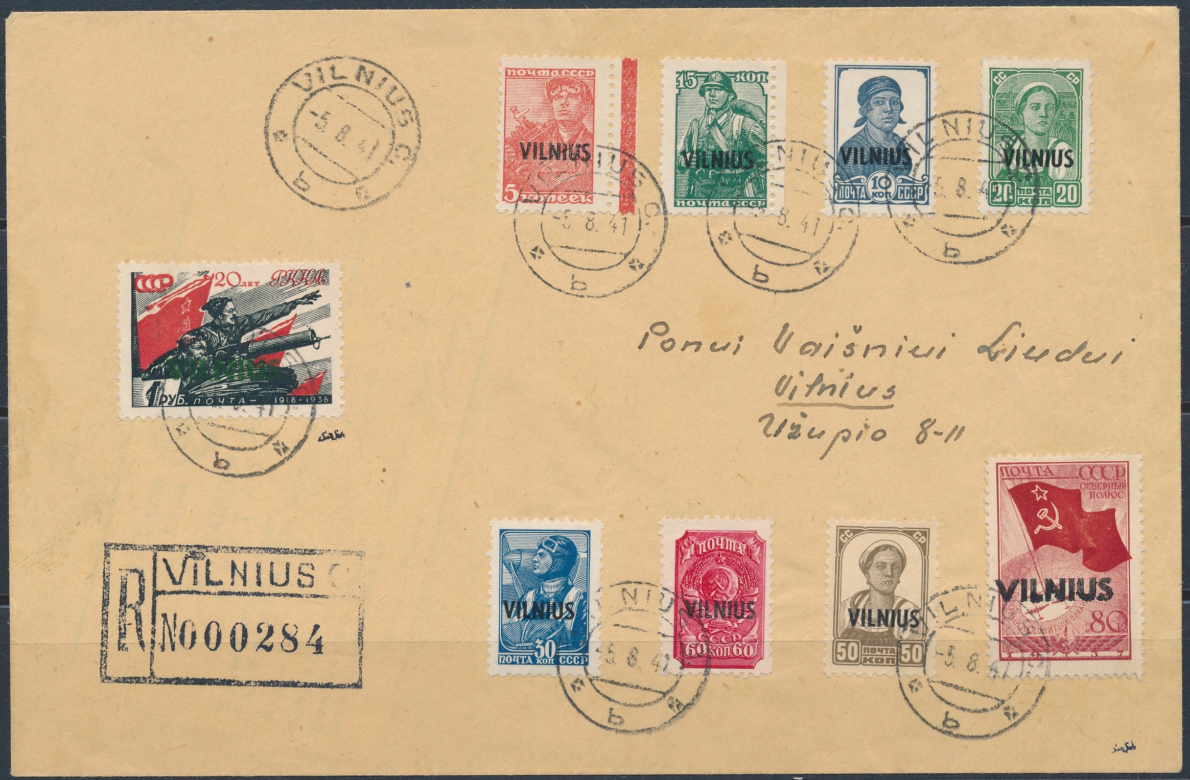 Польська окупація Німеччина 1941 р. Місцеве видання для району Вільнюс, так -цільна серія "Вільнюс" повної серії штампів на зареєстрованому цілому пошті !!!