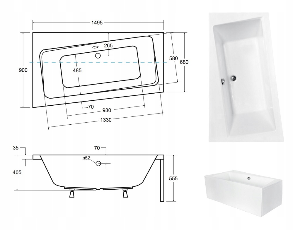 Комплектується: ванна, корпус, сифон, ніжки