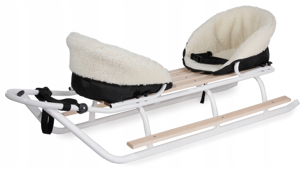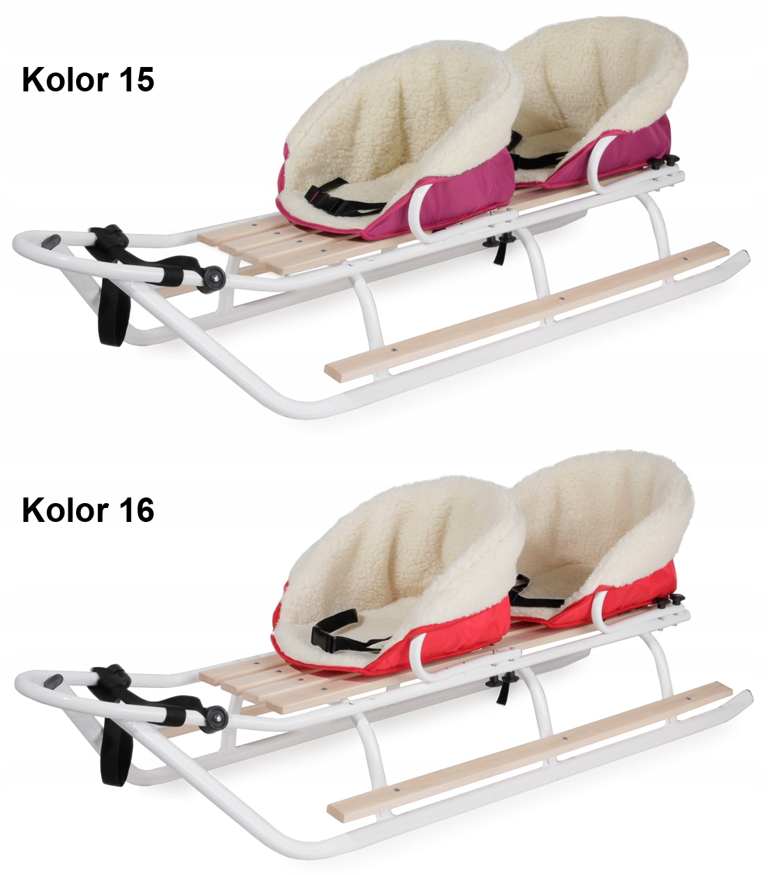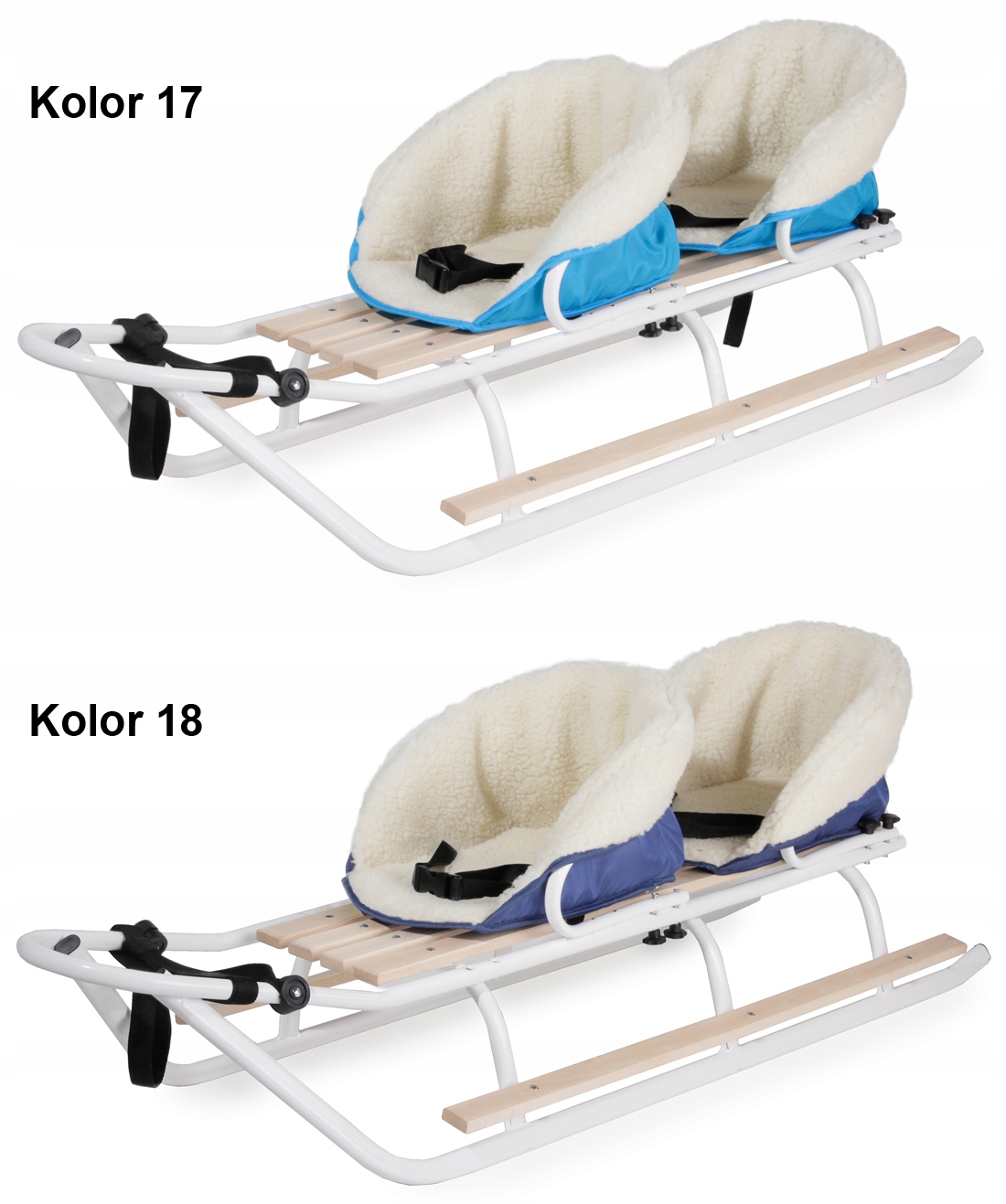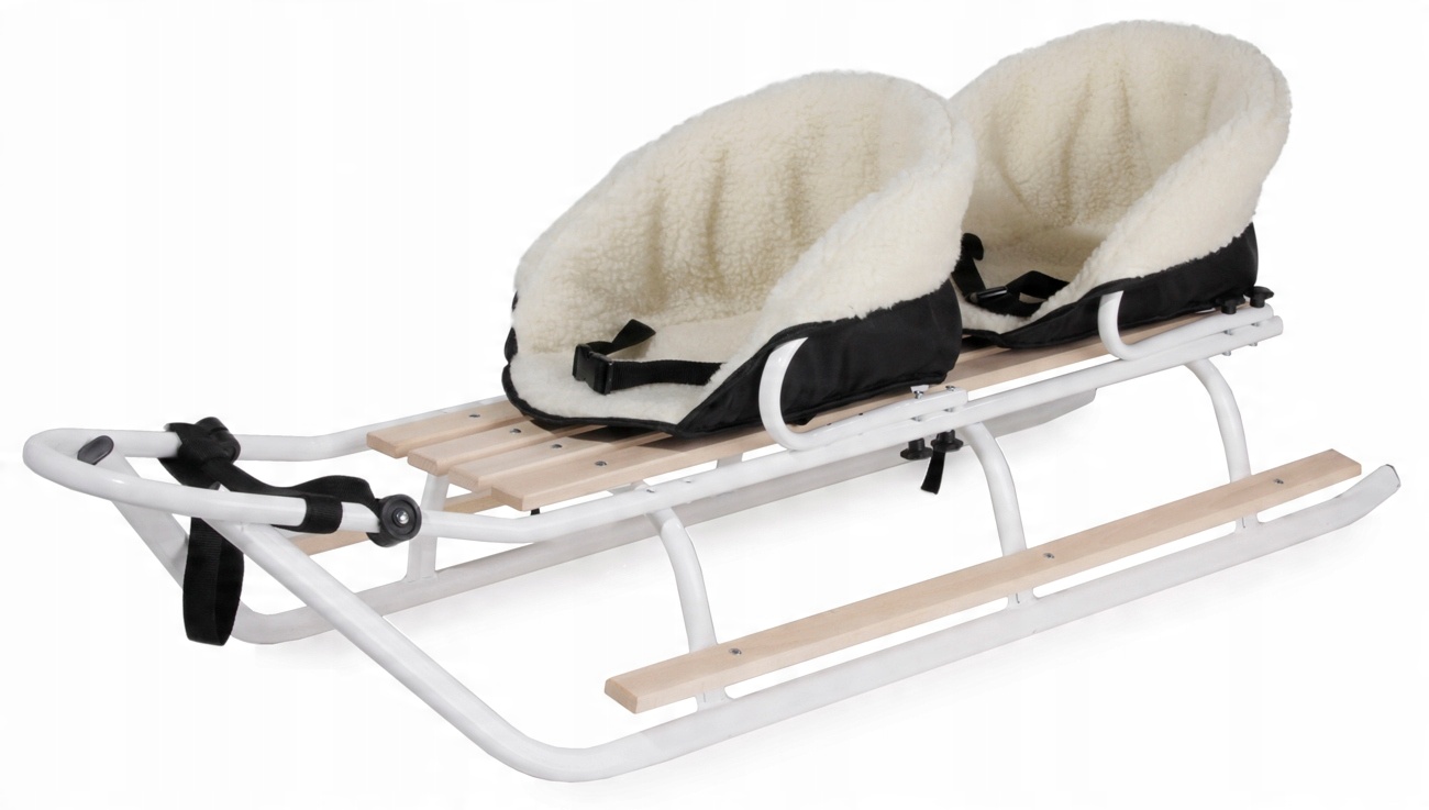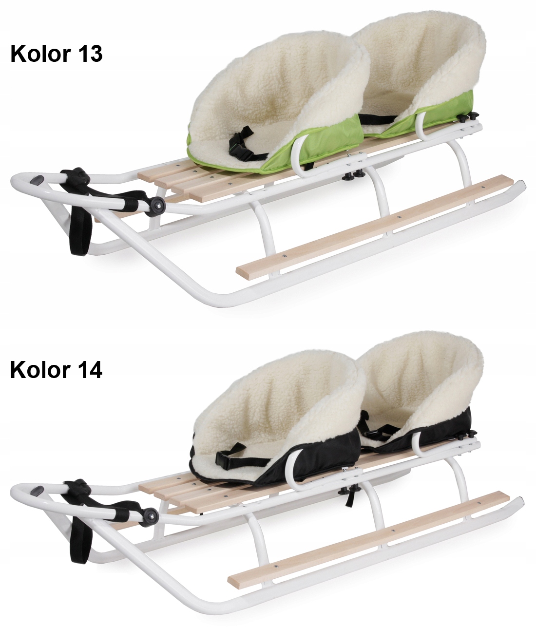 Предмет продажу легкі санки Duo від польського виробника, призначені для близнюків, братів і сестер та батьків з дитиною. Санки виготовлені з сталі з товстим профілем. Міцні зварні шви є гарантією міцної та стабільної конструкції. Полози з широким інтервалом підвищують безпеку водіння наших дітей. Вони оснащені регульованим штовхачем з гумовим натягом і двома реверсивними спинками.Штовхач і спинка легко і швидко демонтуються в залежності від потреб. Санки обладнані підніжкою, що підвищує комфорт катання для дітей старшого віку Мають два теплих сидіння з високоякісної овечої вовни, оснащені ремені безпеки. Сидіння додатково утеплені м'якою губкою для оббивки. Вовняні сидіння розміщені на спинках і кріпляться знизу ременем і пряжкою, що запобігає зісковзуванню санок.