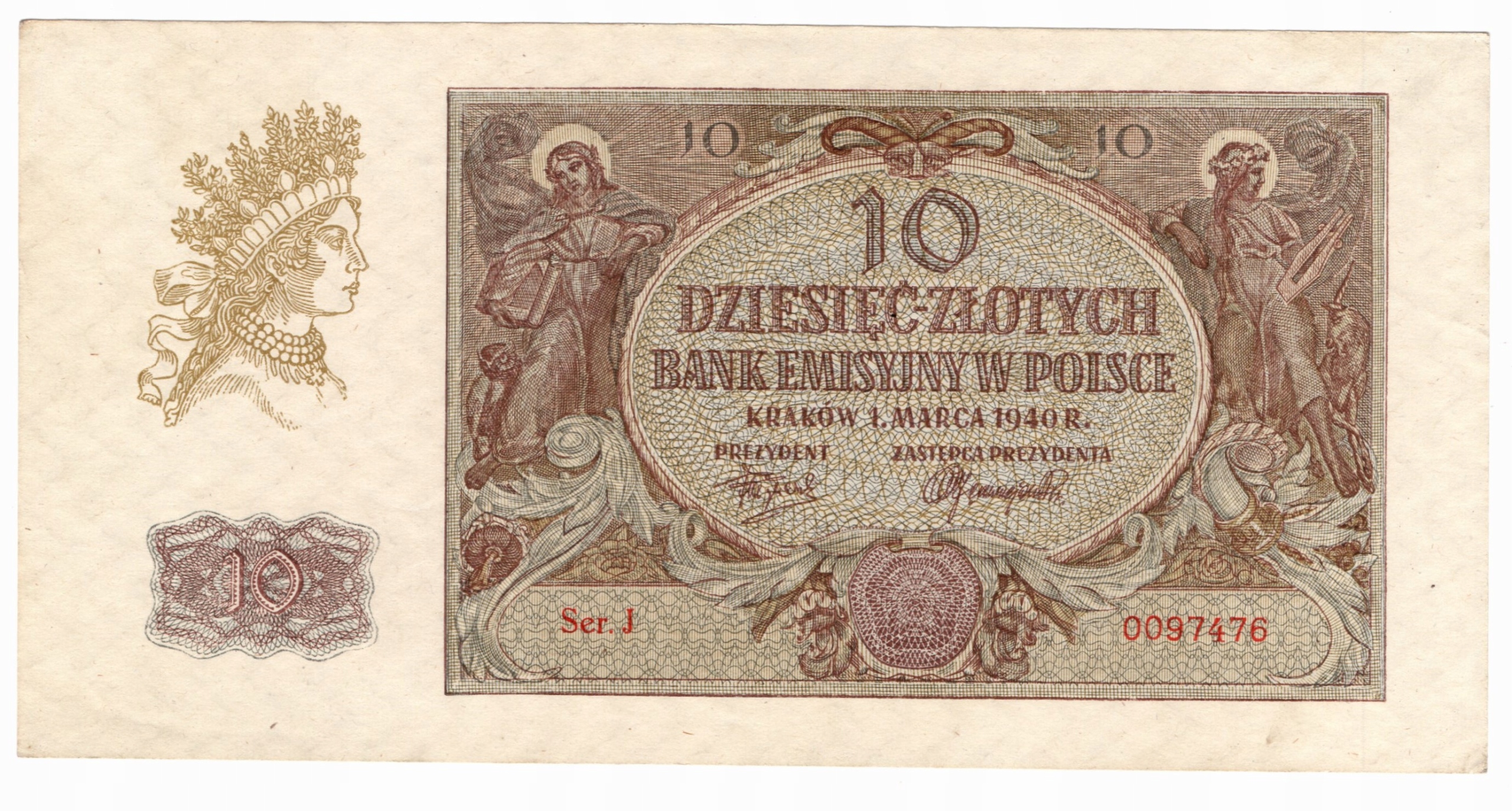 ПОЛЬСЬКИЙ БАНКНОТ 10 злотих 1940 р. ДЕРЖАВНИЙ 1 / 1- СЕРІЯ j