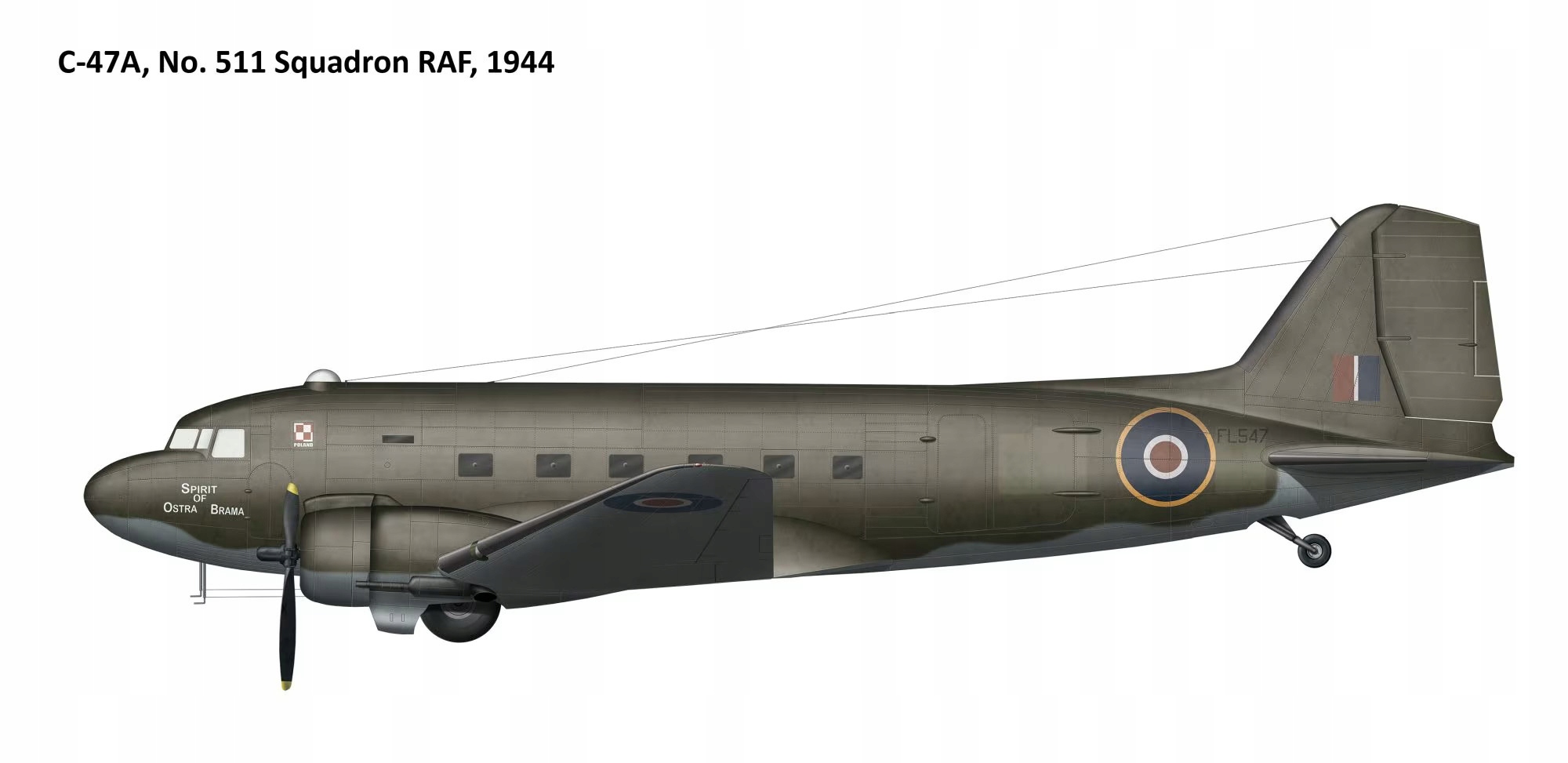 Douglas C-47A Skytrain — це військова версія відомого пасажирського літака DC-3, одного з найнадійніших і універсальних транспортних засобів Другої світової війни. У ВПС Польщі та в цивільній авіації після війни ця машина написала дуже важливу главу. Під час Другої світової війни польські пілоти у Великій Британії використовували С-47А в підрозділах ВПС. Вони в основному використовувалися для перевезення солдатів і припасів, евакуації поранених, виконання обов’язків зв’язку та участі у великих операціях союзників (наприклад, Market Garden — хоча це машини не належали польському підрозділу, поляки літали на них як члени екіпажів Королівських ВПС). С-47А цінувався за надійність, велике корисне навантаження та простоту в експлуатації. Після 1945 року кілька одиниць C-47A потрапили до Польщі – як за радянської підтримки (по ленд-лізу повернуто в СРСР і передано), так і за рахунок ресурсів, що залишилися в Європі.