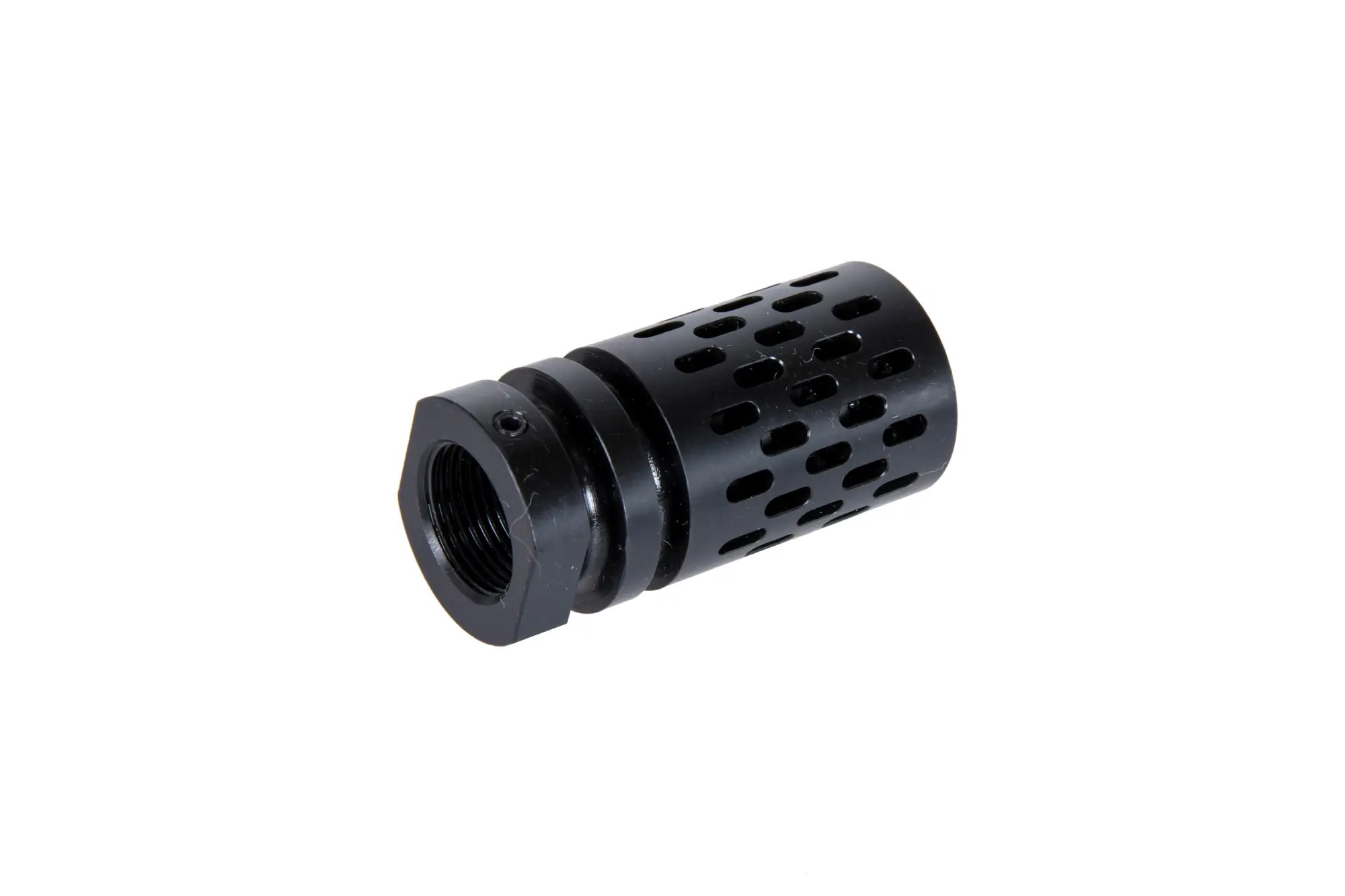 Сталевий випускний пристрій, присвячений реплікам M4/M16, але він буде відповідати кожній гвинтівці з бочкою, що закінчується стандартним лівим -14 мм CCW.