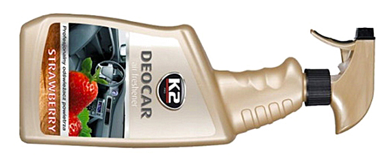 K2 DEOCAR — професійний освіжувач повітря з ексклюзивним і дуже інтенсивним ароматом завдяки використанню високої концентрації ароматної композиції, як, наприклад, у парфумах. Спеціально підібраний склад нейтралізує неприємні запахи. Ідеально підходить для використання професійними мийниками автомобільної оббивки після прання оббивки. Надовго наповнює салон автомобіля ароматним ароматом.