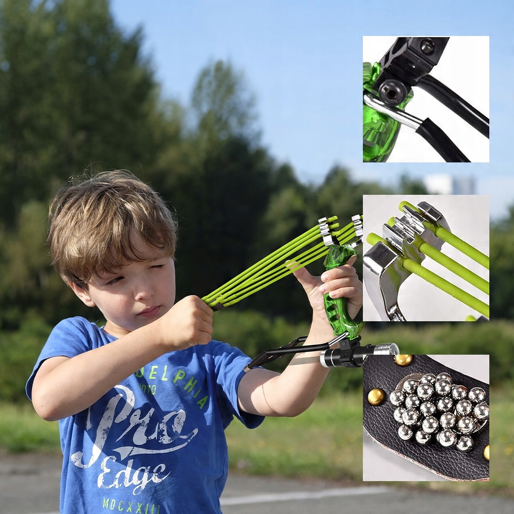 Удосконалені еластичні смуги збільшують ваші можливості та бал. Крім того, тактичний постріл із рогаткою є особливо точним завдяки сильній та комфортній ручці, що робить його ефективним інструментом для ваших цілей. Більше того, конфігурація 3 -х нитки вбік дійсно забезпечує плавний запуск