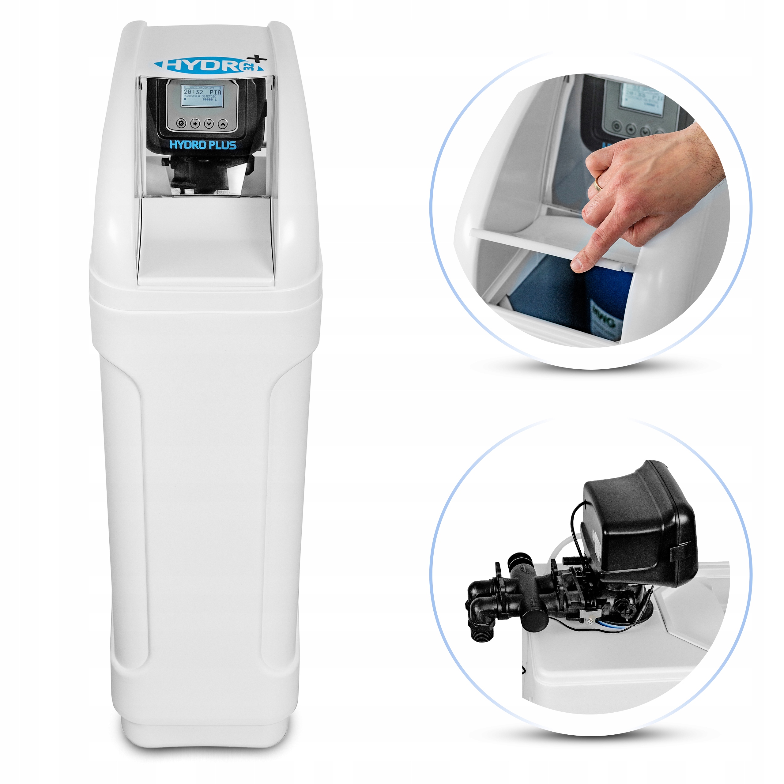 Прилади Hydro Plus оснащені сучасним і повністю автоматичним об’ємним контролером Hydro Plus із великим екраном із підсвічуванням, вбудованим сигналізація про низький рівень солі, внутрішній лічильник води (можливе калібрування імпульсу) та обслуговування польською мовою. Можливість вибрати один із до 6 типів регенерації ложа та вручну коригувати тривалість його окремих циклів.