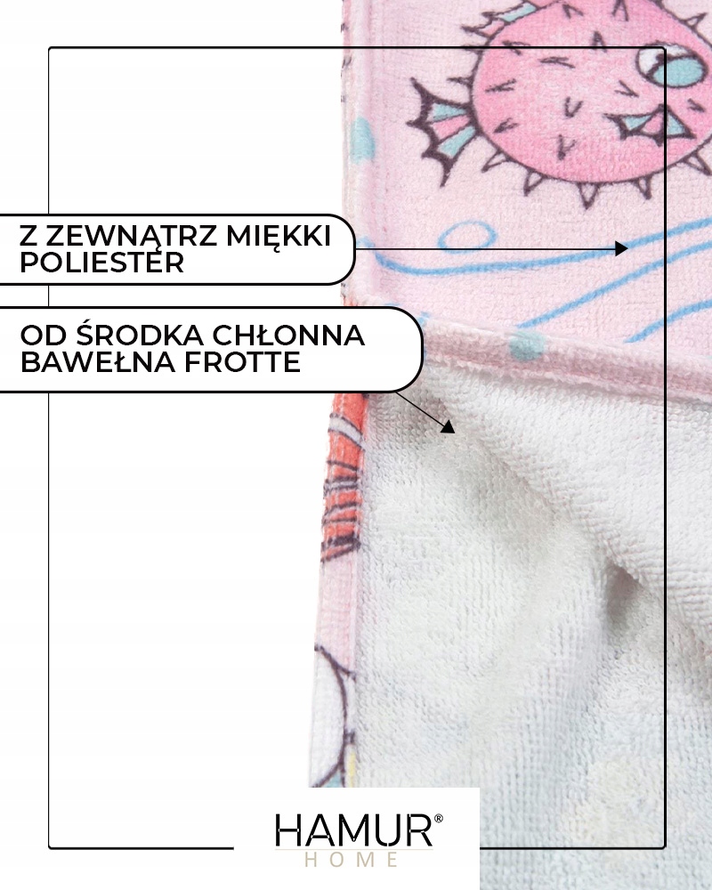 Дитяче пончо з колекції Hamur Home - це практичний чохол з якісного і міцного матеріалу, ідеальний як для пляжу, так і для дому. Зовні дуже м'яка велюрова тканина з оригінальним і міцним принтом забезпечує тепло і обмежує прилипання піску на пляжі. Пончо стійке до частого прання, а принт міцний і не линяє.