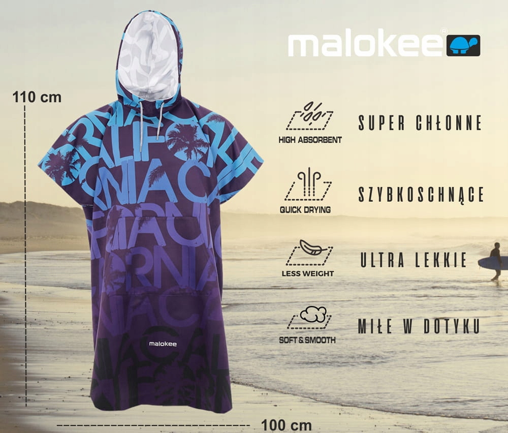 Каліфорнійське пончо — це надзвичайно зручне пончо з мікрофібри, що швидко висихає, для любителів водних видів спорту.