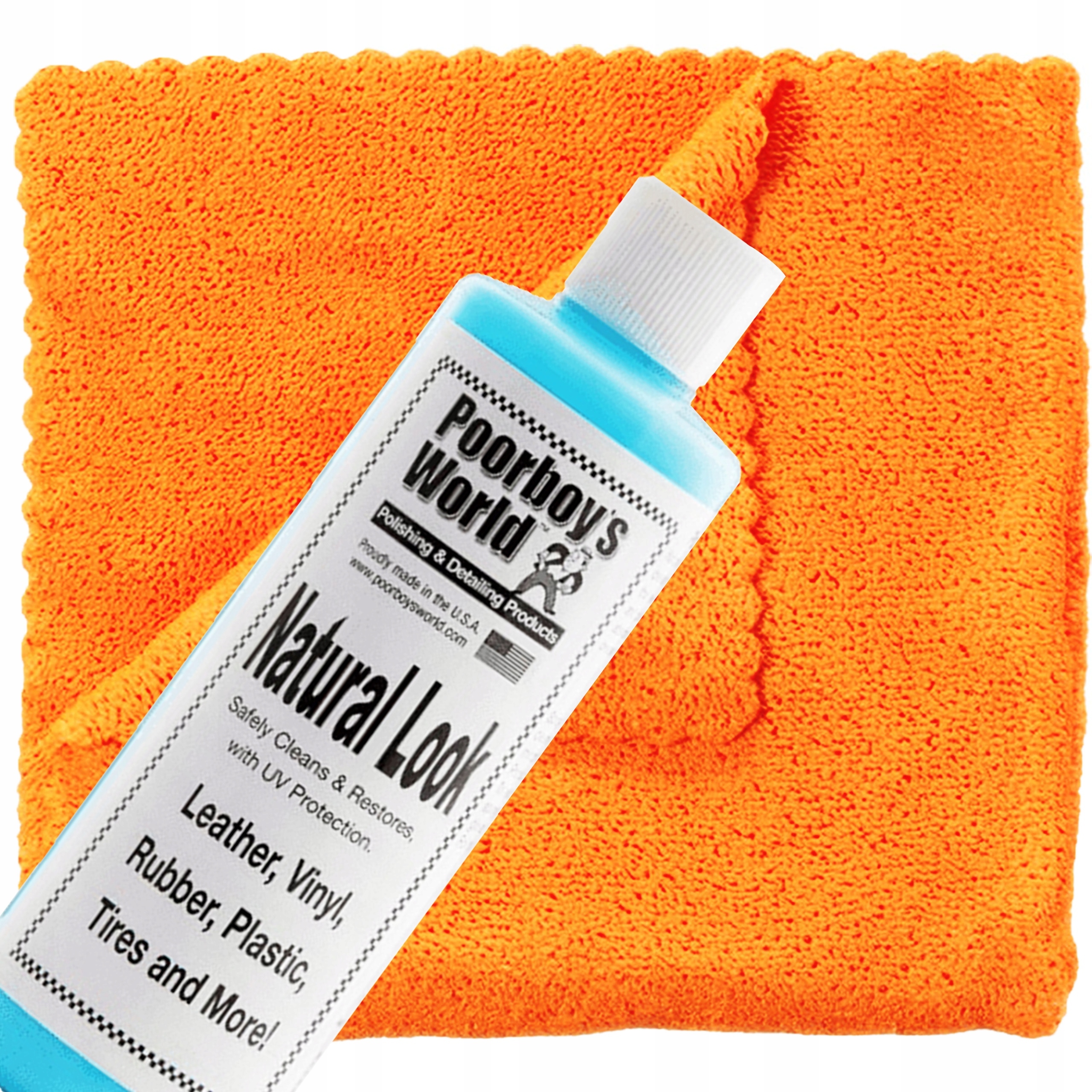 Занедбані поверхні всередині автомобіля з часом висихають і псуються. Це може бути викликано різними факторами, зокрема: використання миючих засобів або УФ-променів. Poorboy's Natural Look – це продукт на водній основі, який дбайливо очищає та водночас діє як пов’язка для пластикових, вінілових і гумових поверхонь. За один крок він м’яко очищає незначні забруднення та покриває елементи покриттям, яке поглинає УФ-промені. Не залишає жирної плівки. В результаті поверхня, покрита виробом, набуває нового, природного вигляду. Захищений таким чином матеріал довше буде радувати око своїм бездоганним зображенням. Засіб залишає приємний мигдальний аромат.