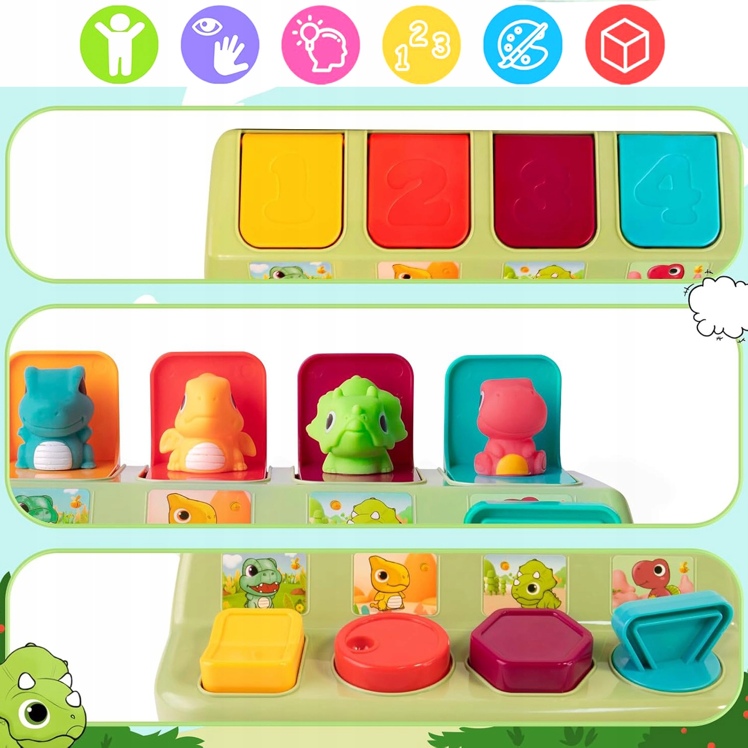 - Ця барвиста іграшка, укладена динозавром для немовлят та маленьких дітей, представляє 4 чарівних динозаврів у різних кольорах.