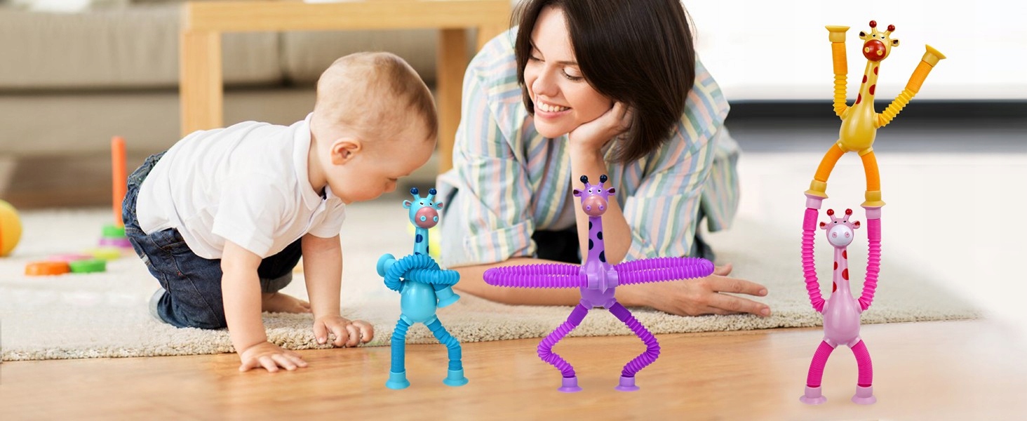 POP TUBE RURY SENSORYCZNE ANTYSTRESOWE żyrafa z diodą LED