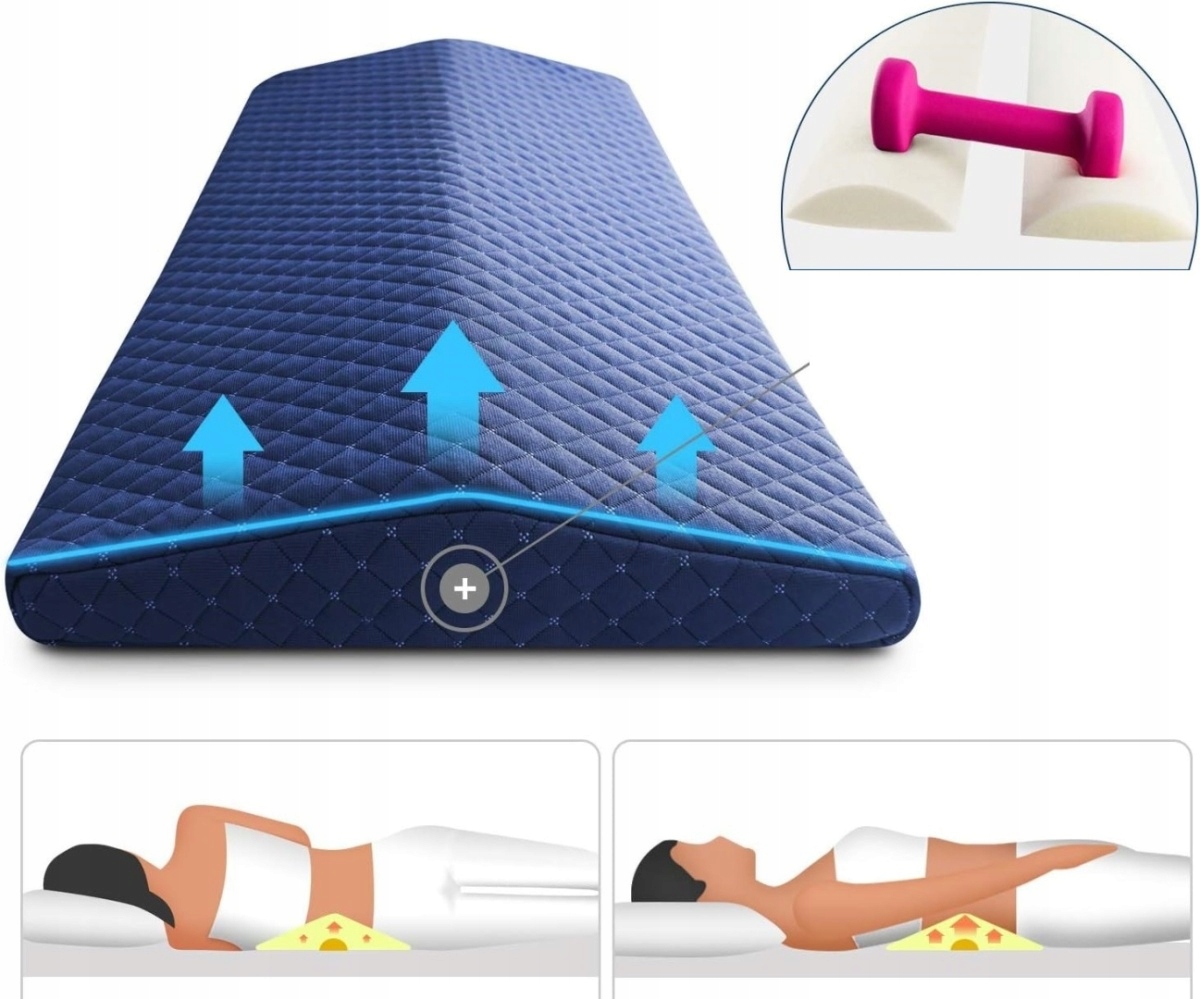 Розміри: 60*30*5/2 см. . Серцевина поперекової подушки виготовлена з піни з ефектом пам'яті, а також з більш жорсткої опорної піни, що забезпечує регульовану жорсткість.