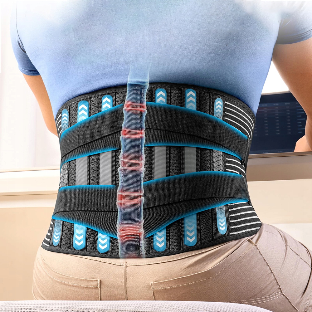 🌟 Високоефективна ортопедична поперекова підтримка: Пояс FREETOO проти болю в спині складається з 4 ергономічних алюмінієвих пластин і 2 пружинних сталевих стрижнів, які створюють систему просторової підтримки на 180°. Завдяки конструкції шириною 21 см він охоплює всю групу поперекових м’язів, зменшуючи тиск на поперек на 60%. 💪 Миттєве полегшення болю в спині, нижній частині спини та радикуліту, спричинених опуклістю міжхребцевого диска, напругою під час сидіння або післяопераційним відновленням.