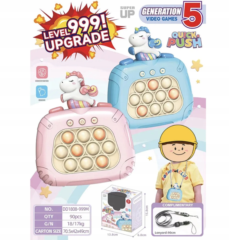 Консольна аркадна гра Popit — це інноваційна інтерактивна іграшка, яка дозволяє дітям розвивати пам’ять і навички концентрації у творчій та приємній формі. Ця унікальна консоль поєднує популярну гру на запам’ятовування та унікальні функції Popit. Ця консоль є розвиваючою грою, яка захоплює і залучає дітей до запам’ятовування та повторення послідовності вогнів. Дітям сподобається це завдання, одночасно розвиваючи свої когнітивні та моторні навички.