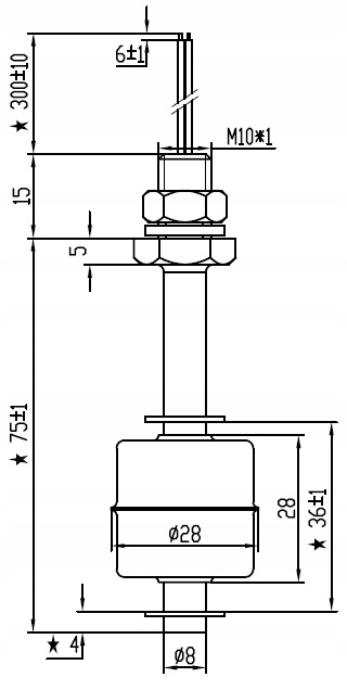 Поплавковий датчик рівня рідини 75 мм з нержавіючої сталі