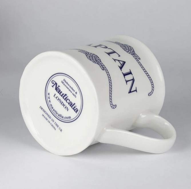 ФАРЦЕЛЯНОВА КРУЖКА Captain була розроблена так, щоб виглядати як проста емальована посудина, але насправді виготовлена з високоякісної порцеляни та прикрашена вручну у Великобританії. Світло-білого кольору з темно-синіми прикрасами (напис англійською «captain»). Кожна чашка упакована в елегантну подарункову коробку. Ідеальна ідея для смішного подарунка для моряка.
