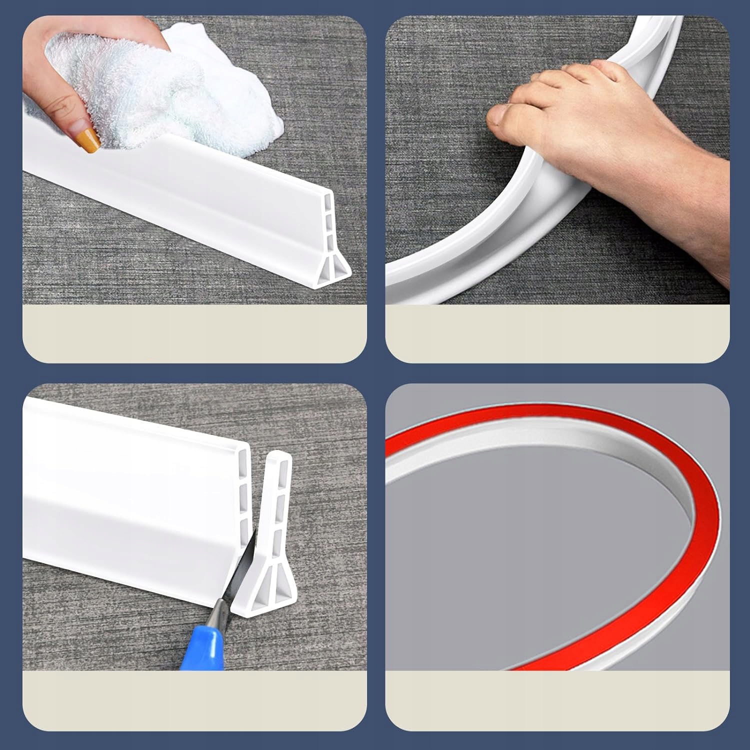 ➡️ Широкий спектр застосування -Водний бар’єр можна приклеюється майже до будь-якої гладкої поверхні та підходить для використання на підлозі душових кабін, душових піддонах, кухонних раковинах, під дверима ванної кімнати, навколо країв ванн, пральних машин або туалетів тощо. Водонепроникний бар’єр, який ефективно блокує потік води та дозволяє легко висихати . вологе осадження.