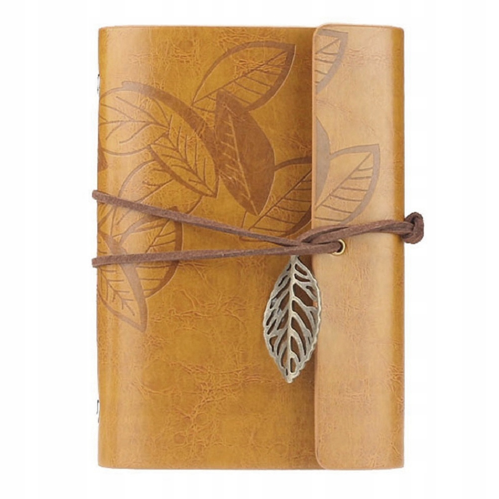 ✅1 * Вінтажний стиль Листя Листя Візерунок ПУ обкладинка Пустий блокнот Блокнот Порожній журнал Щоденник Jotter Розмір S (жовтий)