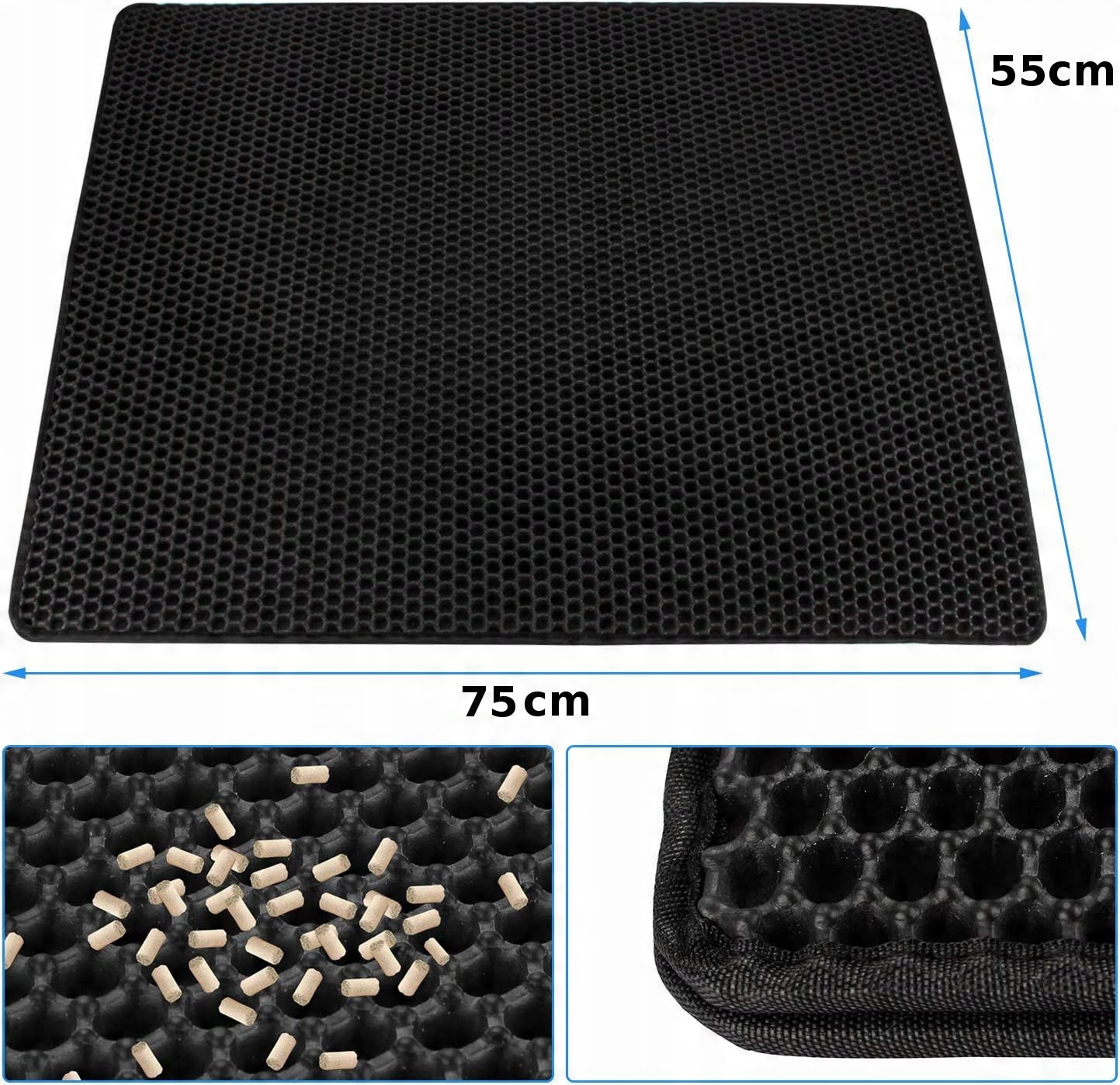 Просто розташуйте його біля лотка, щоб, коли ваша кішка проходитиме крізь нього, залишати там частинки сміття. Килимок складається з двох шарів - сітки, яка затримує бруд, і нижнього шару проти ковзання.