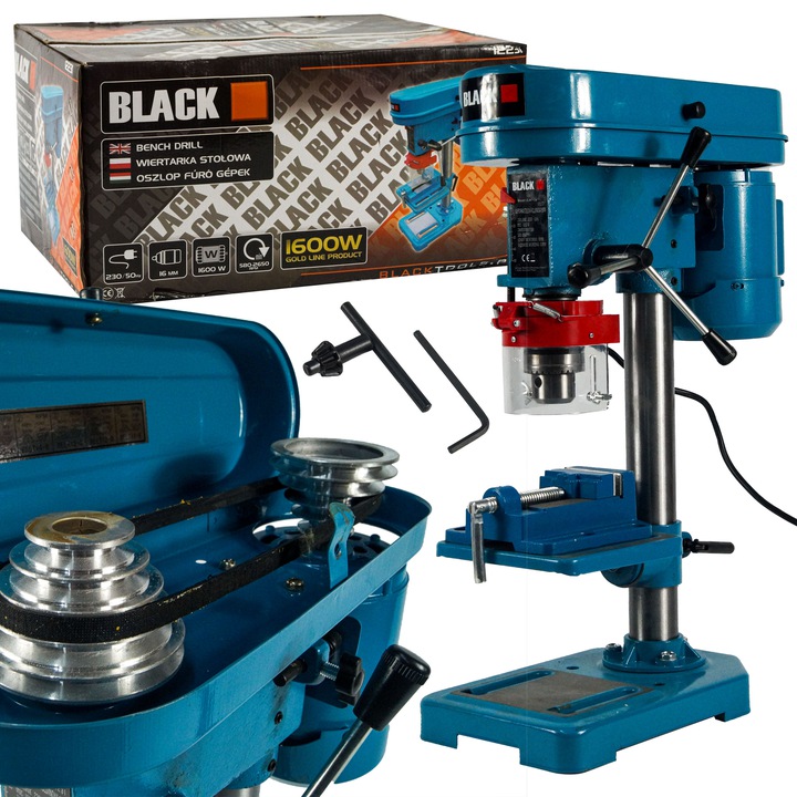Настільна, колонна дриль, електрична, максимальна потужність 1600 Вт, діаметр свердла 16 мм. Виготовлений з високоякісної сталі, він міцний і міцний. Настільна дриль незамінна в майстерні, де свердління виконується з високою точністю і акуратністю. Ідеально підходить для професійного свердління отворів. Міцні лещата, що входять до комплекту свердла, дозволяють надійно утримувати висвердлений предмет, тож ви можете бути впевнені, що предмет не зрушиться чи не зламається під час свердління. Якщо ви шукаєте точну та потужну дриль, цей продукт саме для вас. Тому купуйте нашу настільну дриль BLACK POLSKA!