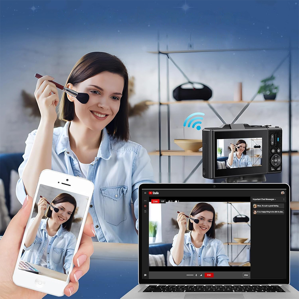 - Цифрова камера 4K пропонує багато функцій, як-от панель DIY, подвійні камери, режим серійної зйомки, стабілізацію зображення, захоплення обличчя та призупинення відео, що допомагає вам заощадити час редагування та пам’ять. Функції сповільненої та сповільненої зйомки дозволяють вам бути креативними!
