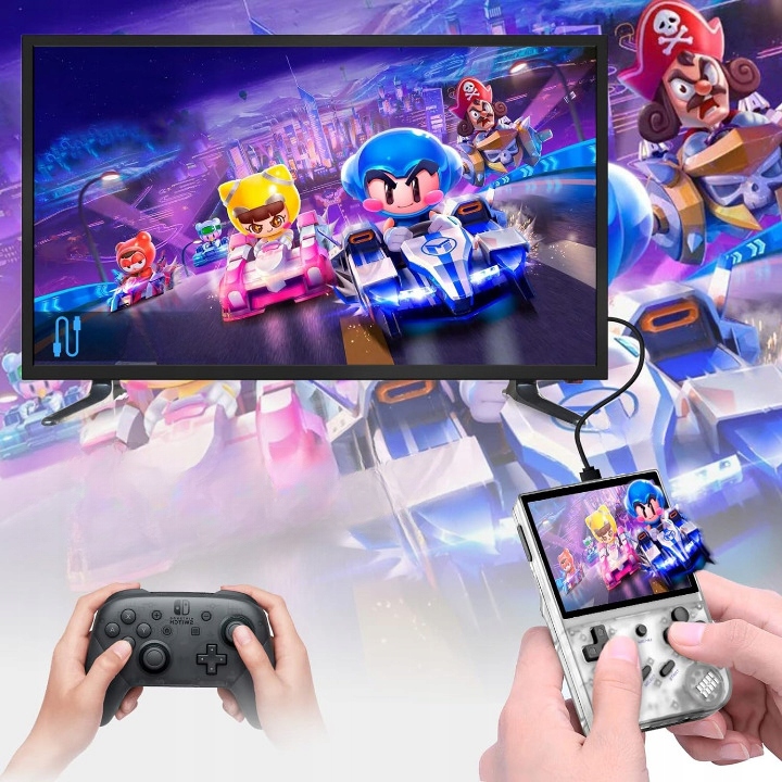 Ігрову консоль RG35XX можна підключити до телевізора за допомогою кабелю HDMI.