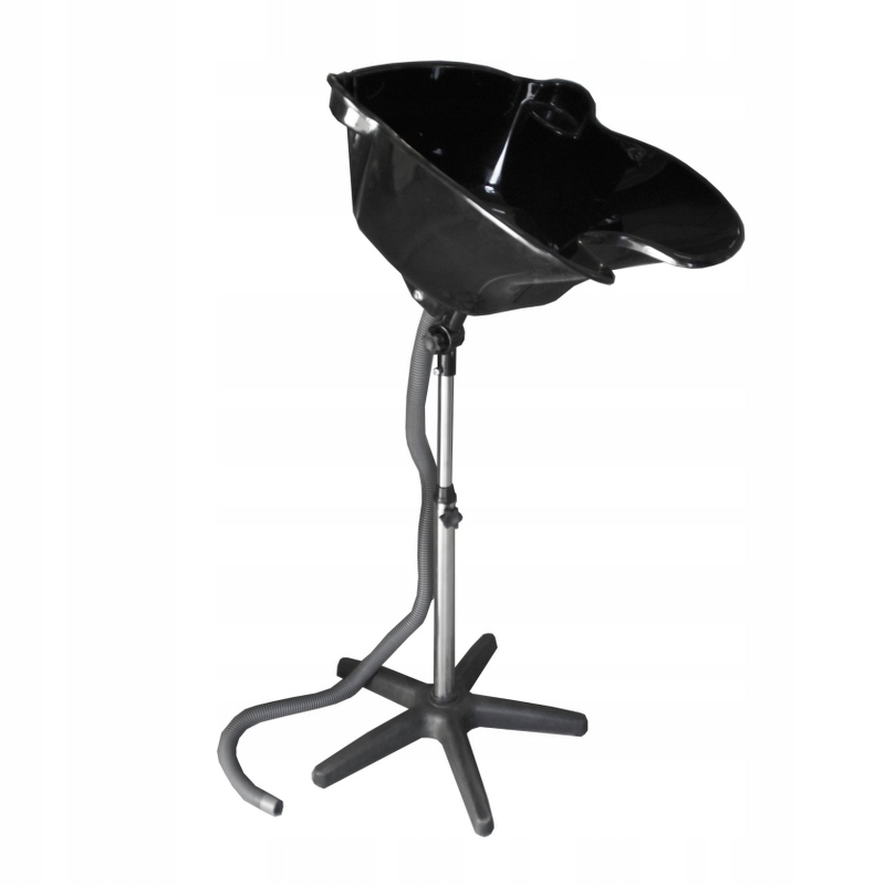 Портативна перукарня на регульованій ніжці. Внутрішня частина мийки виготовлена з високоякісного пластику, який легко змивається від фарби та залишків волосся. Миска має полички з обох боків для шампуню/кондиціонеру. Крім того, чаша омивача має зручне регулювання кута нахилу за допомогою гвинта на верхній частині алюмінієвої ніжки. Зливний отвір, закритий заглушкою та шлангом (приблизно 156 см), що забезпечує гігієнічний і чистий спосіб зливу води з пральної машини.