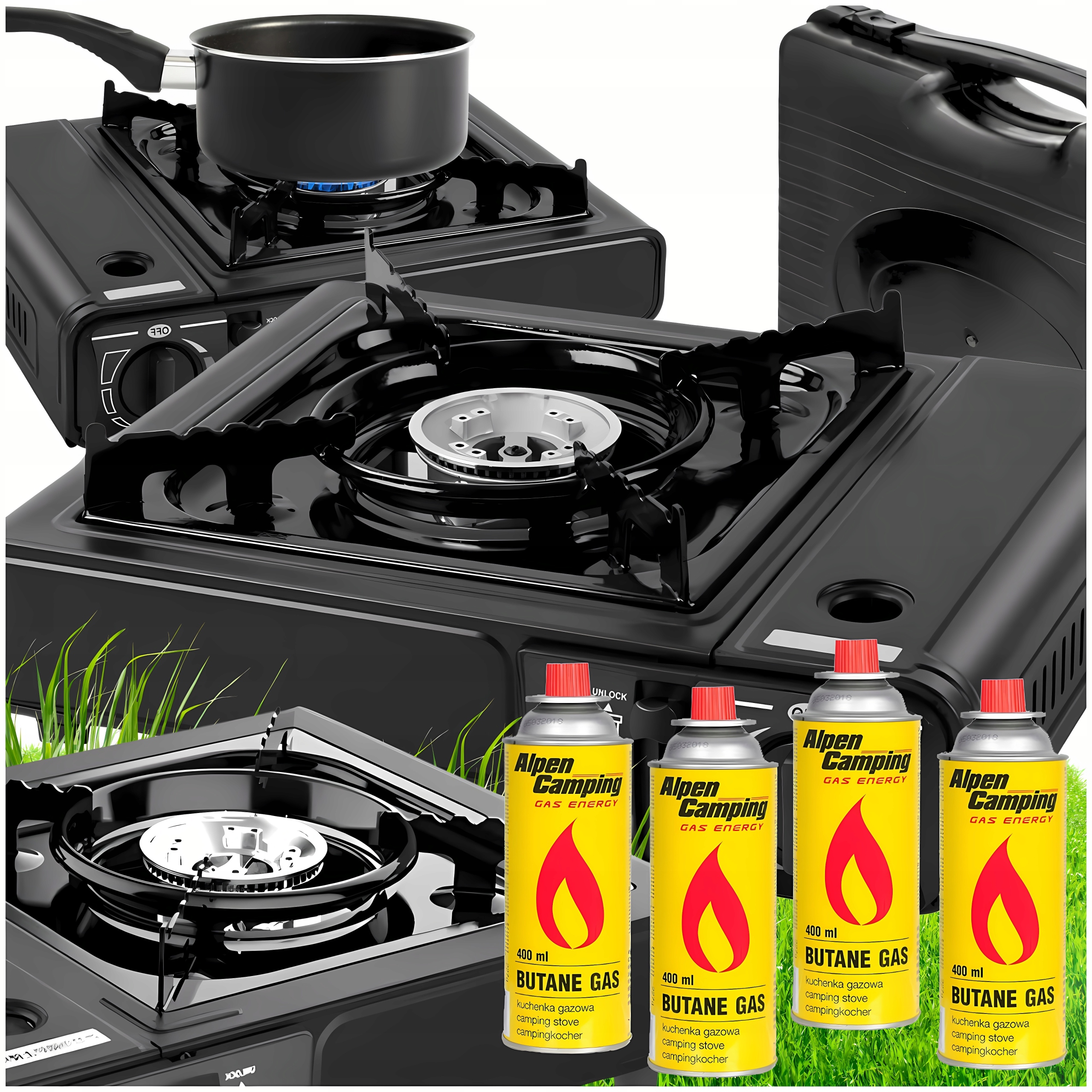 ПОРТАТИВНА ТУРИСТИЧНА ГАЗОВА ПЛИТКА 2в1 + 4x ГАЗОВИЙ КАРТРИДЖ ДЛЯ ПЛИТКИ