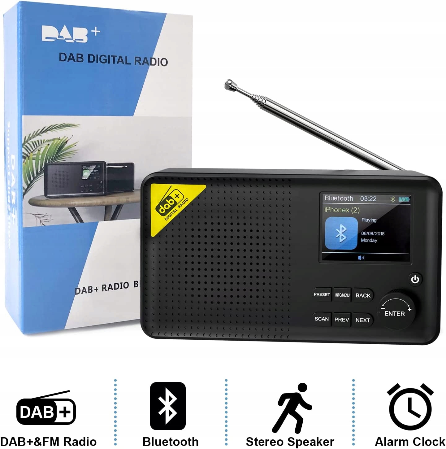 ПОРТАТИВНЕ РАДІО З БУДИЛЬНИКОМ BLUETOOTH DAB FM