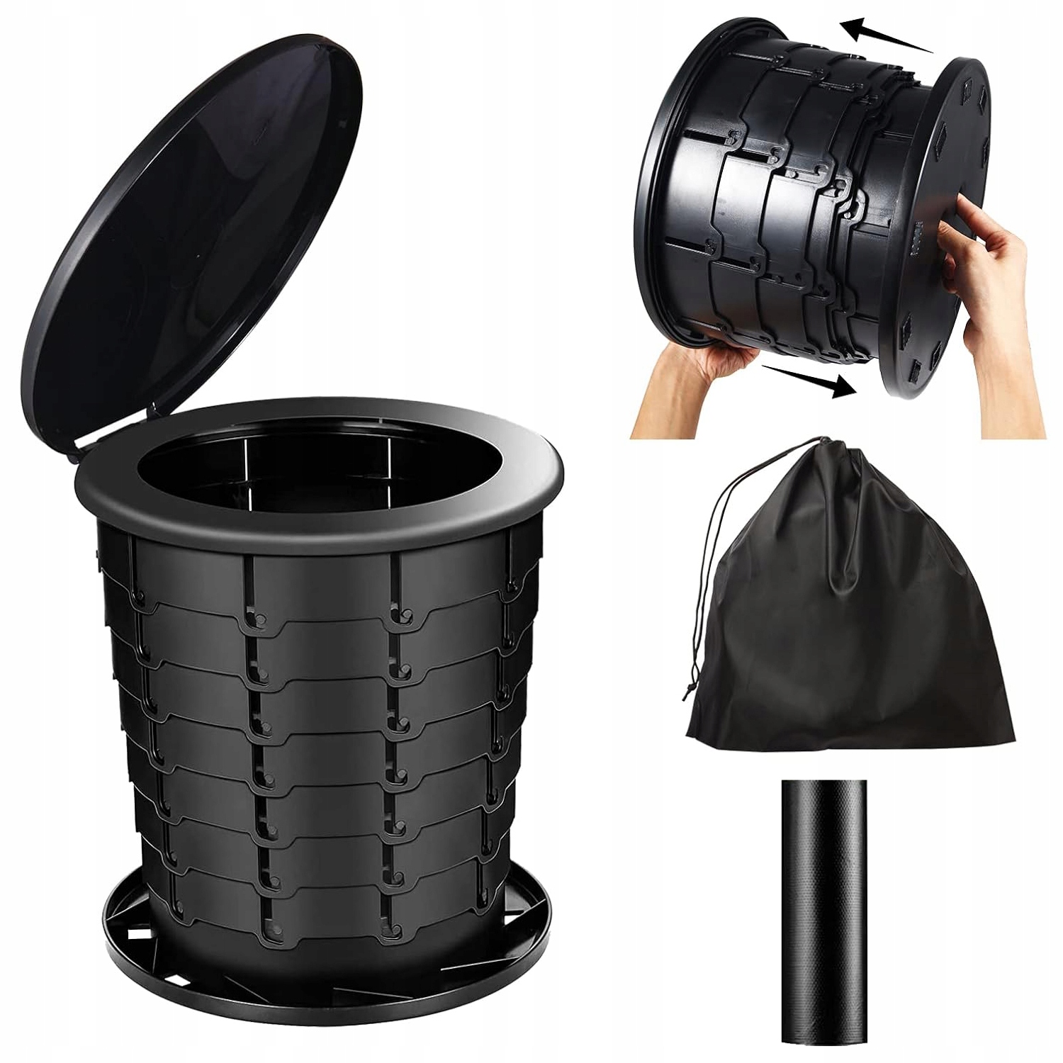 - Універсальний, можна використовувати як портативний туалет, складаний табурет, контейнер для зберігання, журнальний столик або відро для сміття.
