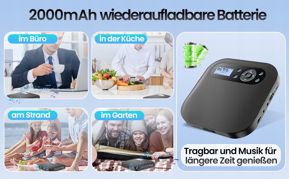 Функції Anti-Skip і Anti-Shock забезпечують стабільне відтворення під час руху. Інтерфейс з підсвічуванням дозволяє працювати в темряві. Ідеально підходить для використання під час подорожей і активного відпочинку.
