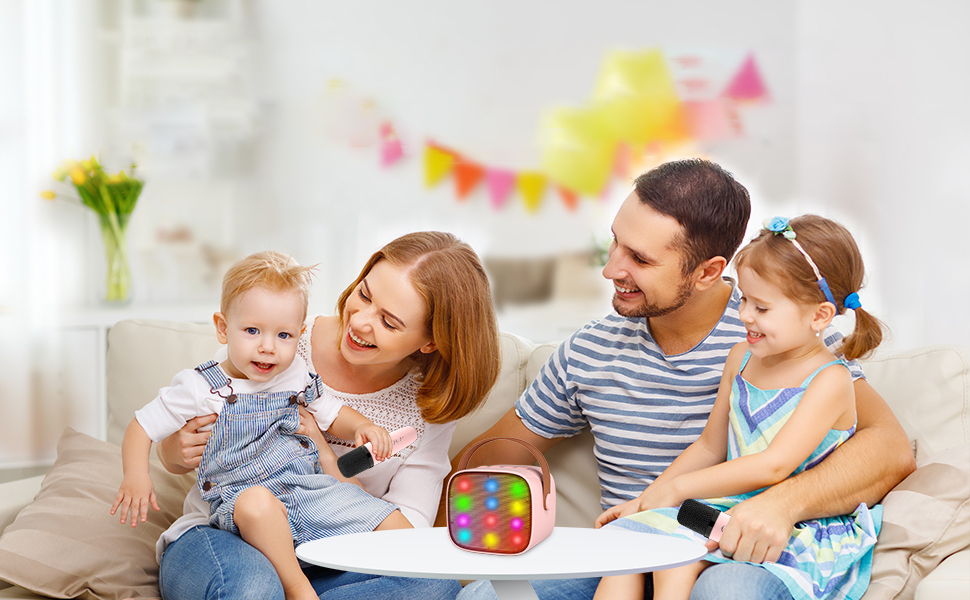 - Цей караоке-автомат є незамінною іграшкою для сімейних розваг, ідеально підходить для вечірок, днів народжень і заохочує всіх приєднатися грати з ним.