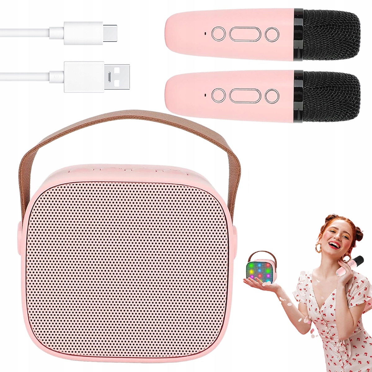 - Bluetooth караоке з 2 бездротовими мікрофонами,після ввімкнення автоматично підключається до колонок, має радіус дії до 10 м і може незалежно контролювати гучність голосу/луни/музики.