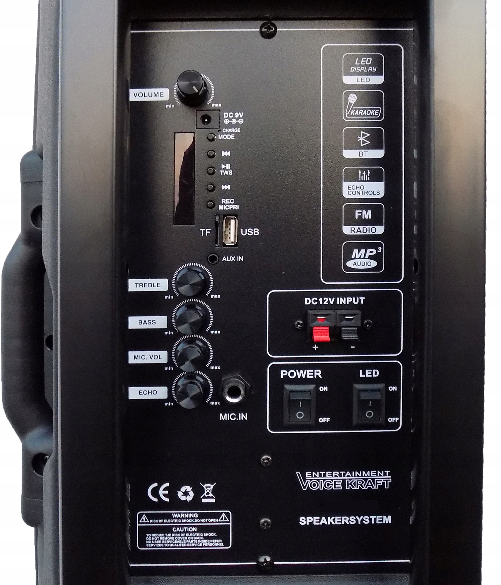 Активна колонка ВК з пультом ідеально підходить для шкільних свят, конференцій, публічних виступів і там, де звук повинен досягати великої групи людей. Колонка має функцію підключення Bluetooth і SD і USB вхід, завдяки чому може відтворювати записи з найпопулярніших носіїв. Додатковий гітарний вхід покращить звук під час живого концерту. Колона виготовлена з високоякісних матеріалів, а завдяки колесам її можна легко транспортувати в будь-яке місце.