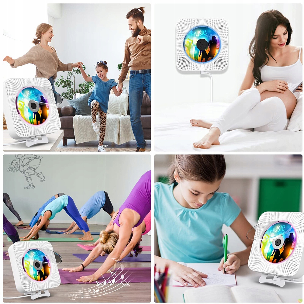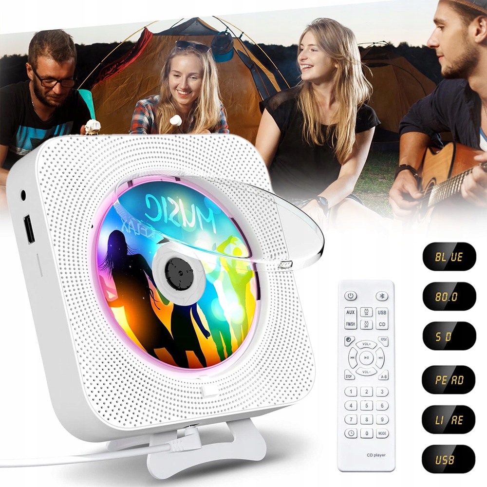 - Домашній програвач компакт-дисків підтримує аудіоформати CD, CD-R, CD-RW, MP3 і WMA, а також може відтворювати музику через Bluetooth, USB-накопичувач, картку microSD і вхід AUX.