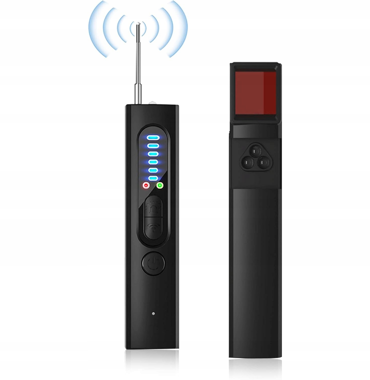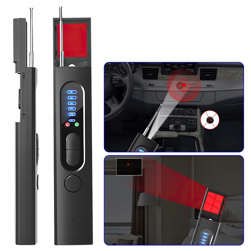 ✔️✔️ [Пристрій багаторазового виявлення] 1. Детектор камери та шукач об’єктивів камери для виявлення прихованих камер-обскур за допомогою прямого візуального огляду за допомогою інфрачервоного лазерного сканування. 2. Виявлення радіочастотного сигналу для виявлення активних радіочастотних передавачів, таких як трансляційна камера, GPS-локатор, бездротова аудіосистема. 3. Функція виявлення магнітного поля виявляє невидимі/невиявлені GPS-пристрої. 4. Ліхтарик також можна використовувати для виявлення камер-обскур (у темному середовищі).
