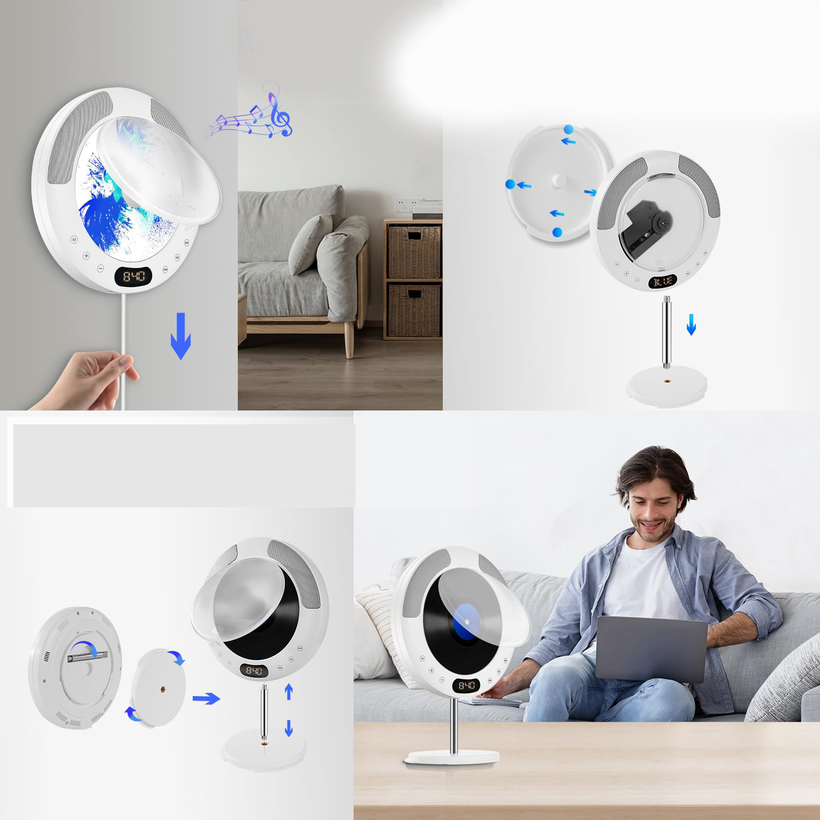 Цей CD -програвач продається в наборі з ручкою стіни та підставкою, тому ви можете легко встановити його на стіну і заощадити простір, або просто покласти на стіл/стіл. гравець. Щоб зняти його, натисніть і закрутіть.