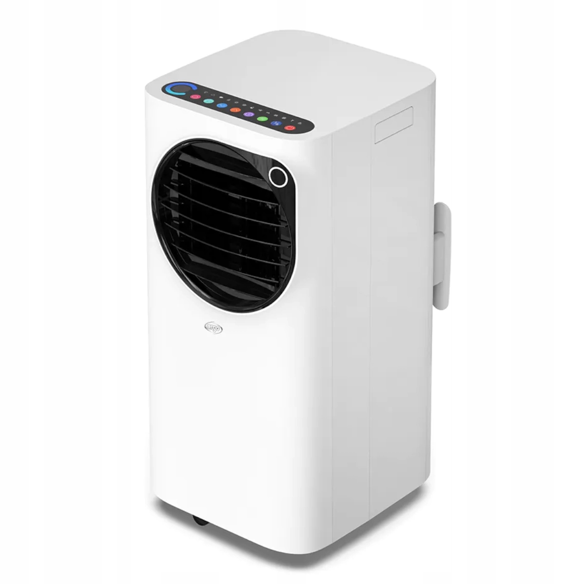 Сучасний портативний кондиціонер, що пропонує багато корисних функцій. Він виготовлений з матового білого матеріалу в мінімалістичному стилі, що робить його ідеальним для будь-якого дизайну інтер'єру. Пристрій має потужність охолодження 3,3 кВт і потік повітря 380 м³/год. Вбудований тепловий насос гарантує швидкий і комфортний комфорт у будь-яку пору року. Управління пристроєм просте і зручне, як за допомогою пульта, так і за допомогою сенсорної панелі управління.