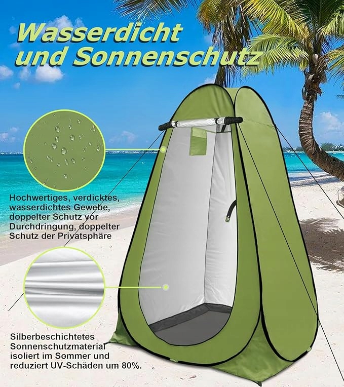 Виготовлений з високоякісних матеріалів, душовий намет забезпечує повний захист від сонця завдяки тканині Oxford 190d з срібним покриттям. Це означає, що ви можете насолоджуватися моментом розслаблення, не боячись шкідливого УФ -випромінювання, а також у вас є гарантія, що намет буде стійкий до води та розриву.