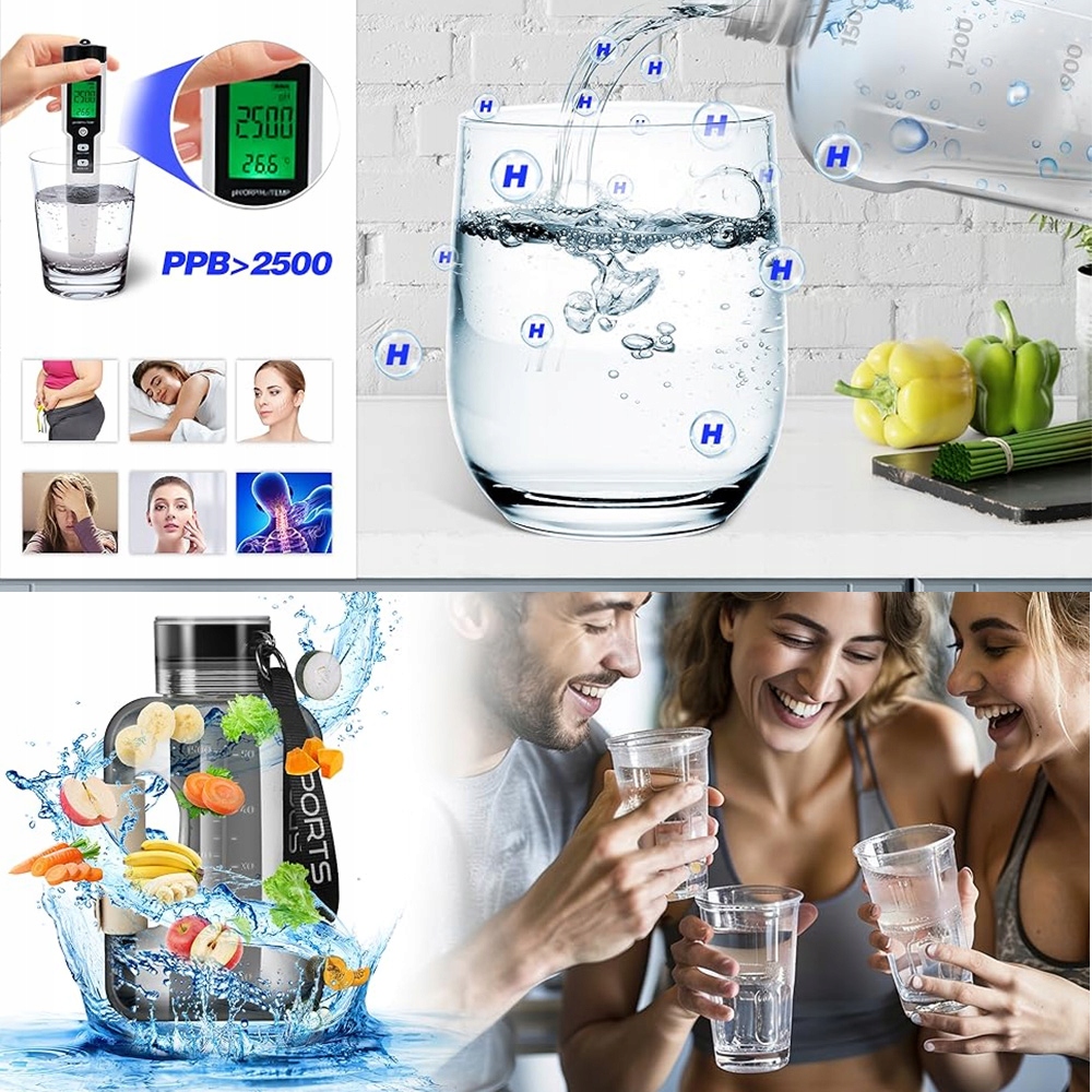 Водневий водяний генератор має розміри 22*12*12 см і може вмістити 1500 мл рідини (приблизно 51 унцію), тож він може легко задовольнити щоденну потребу у питній воді під час тренування, виходу з дому чи роботи. Водневі пляшки не містять шкідливих речовин, безпечніші і їх можна вживати без побоювання.
