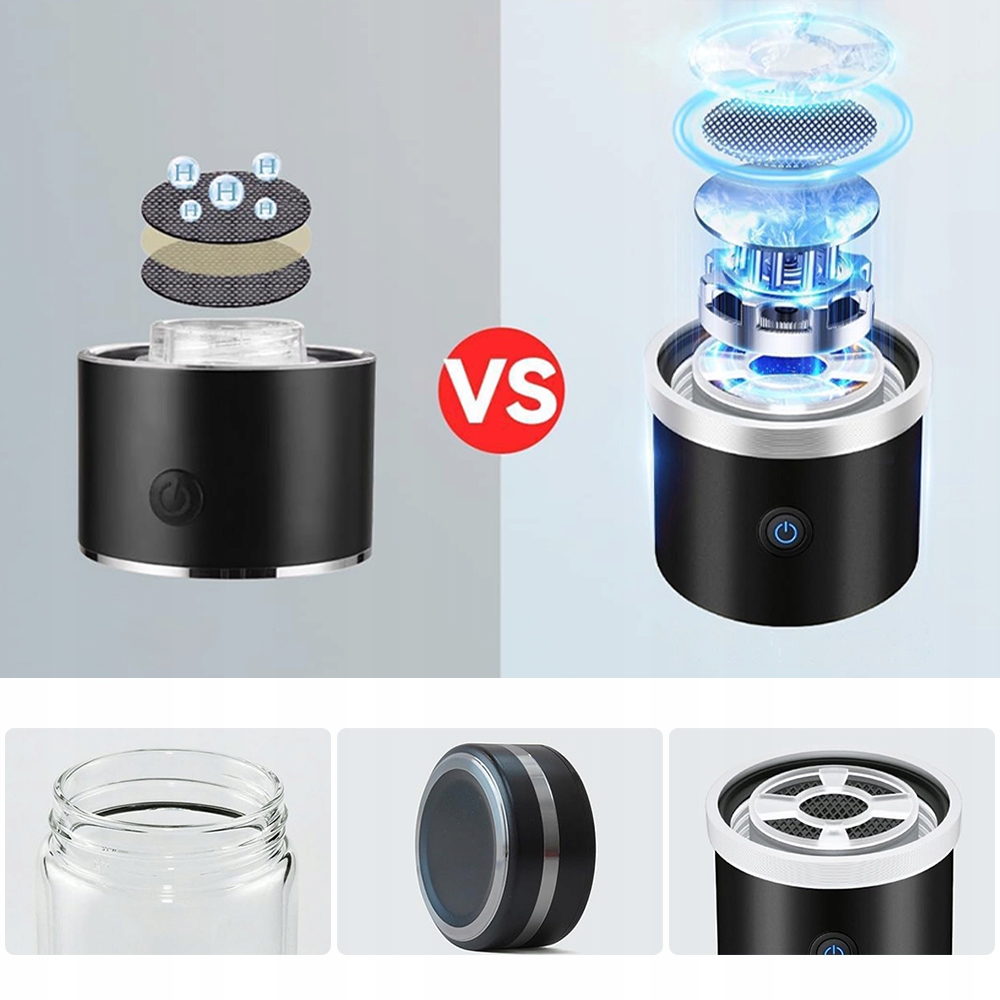 Наші генератори водню виготовлені з високоякісного, міцного скла та мають санітарні сертифікати. Кружка має міцну неслизьку накладку EVE, а товста кришка гарантує безпечне закриття.