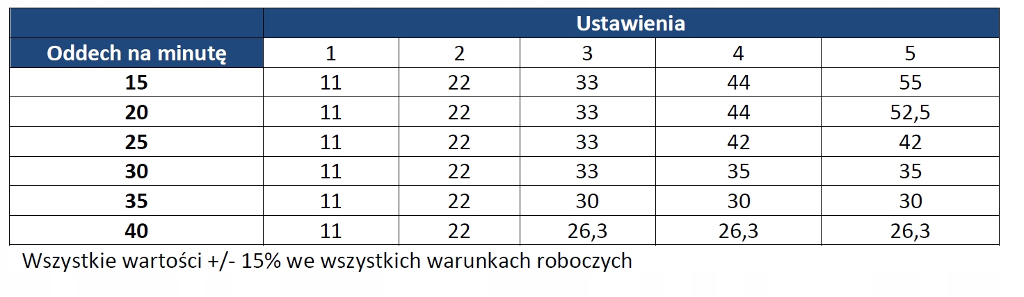 Кількість пульсової дози (мл/вдих) відносно налаштування та частоти дихання: