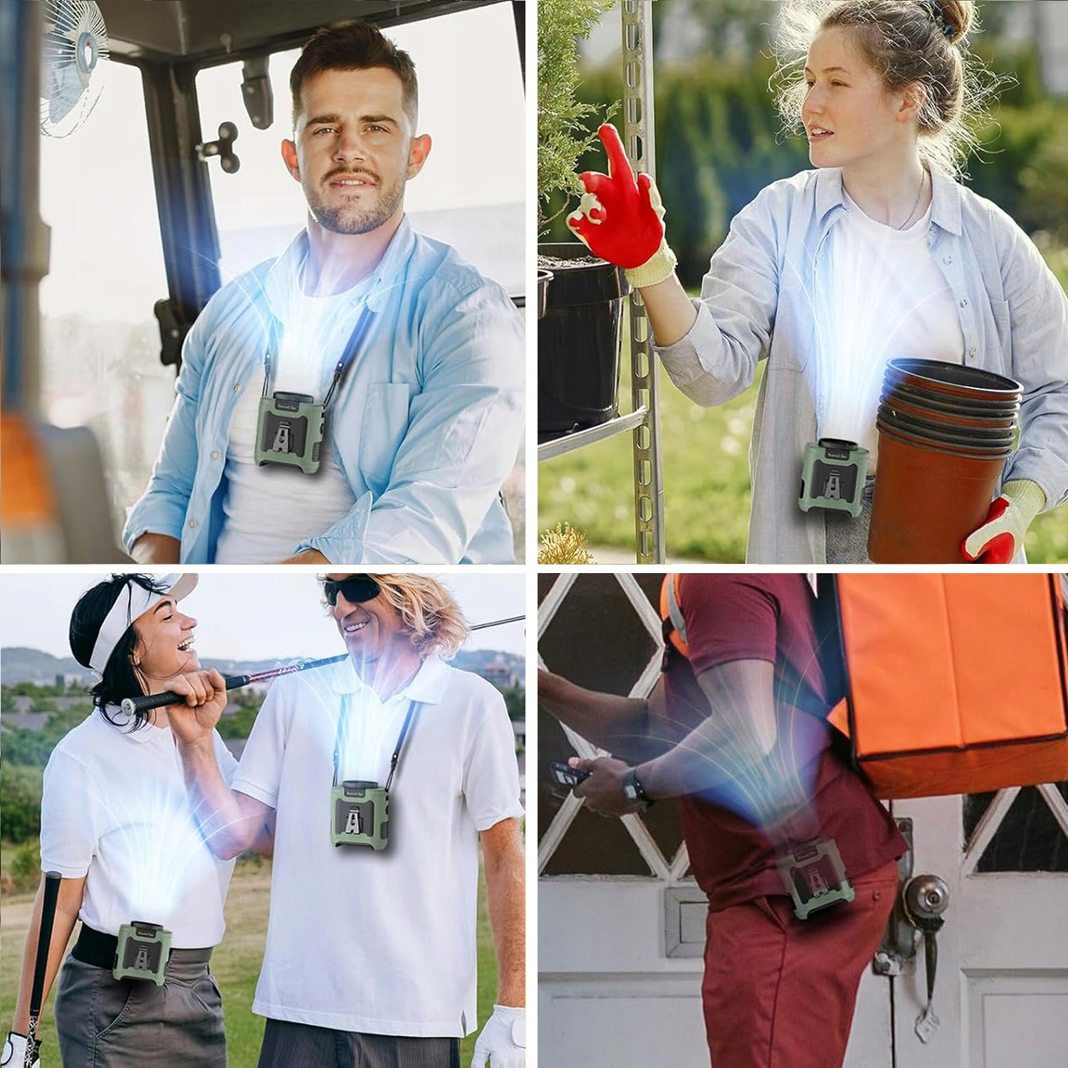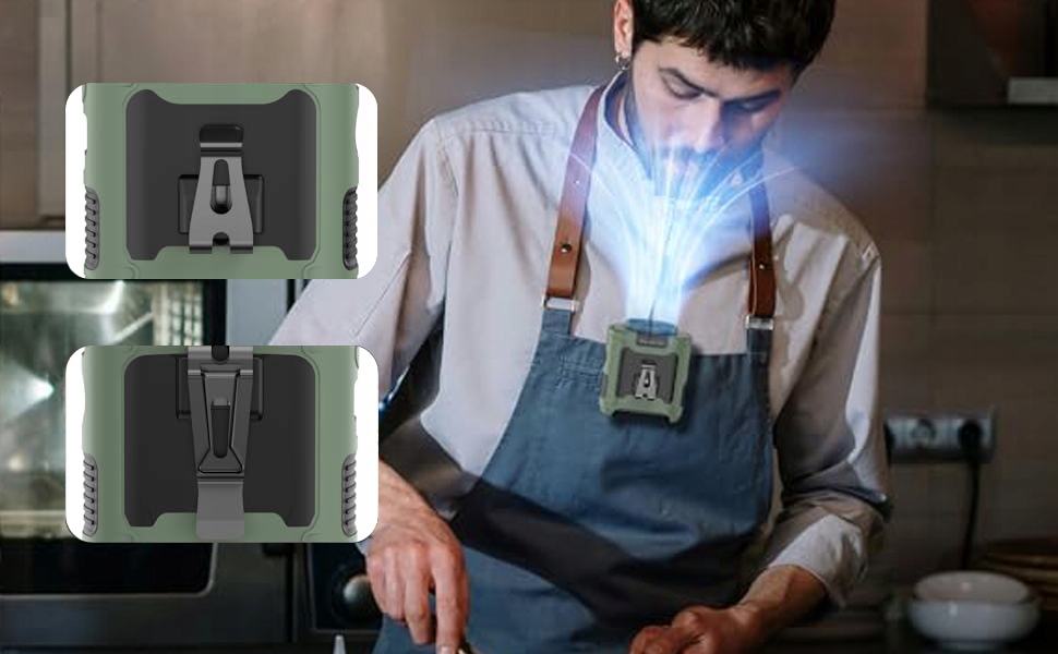 ⭐ вентилятор затискача талії, вентилятор столу та вентилятор шиї в одному. Ви можете прикріпити його до сорочки, ременя або штанів, повісити його на шию з шнурком або покласти на стіл на підставку. Вбудований світлодіодний світло з режимом постійного світла та режимом SOS.