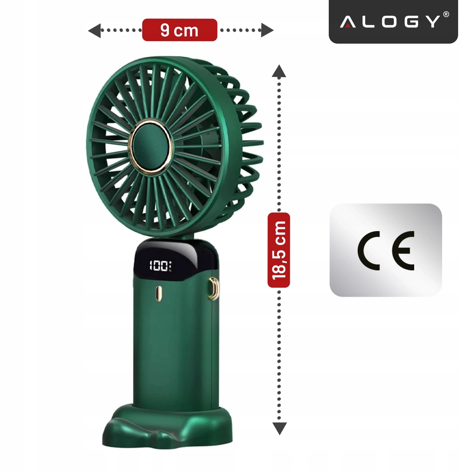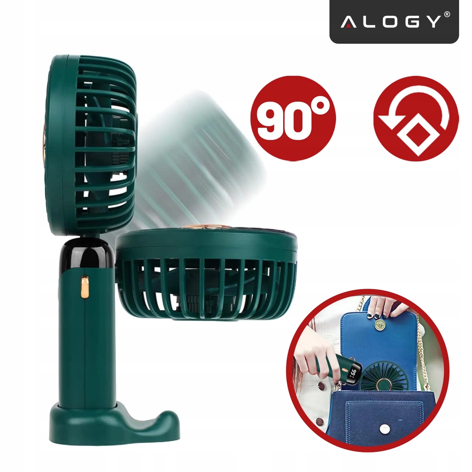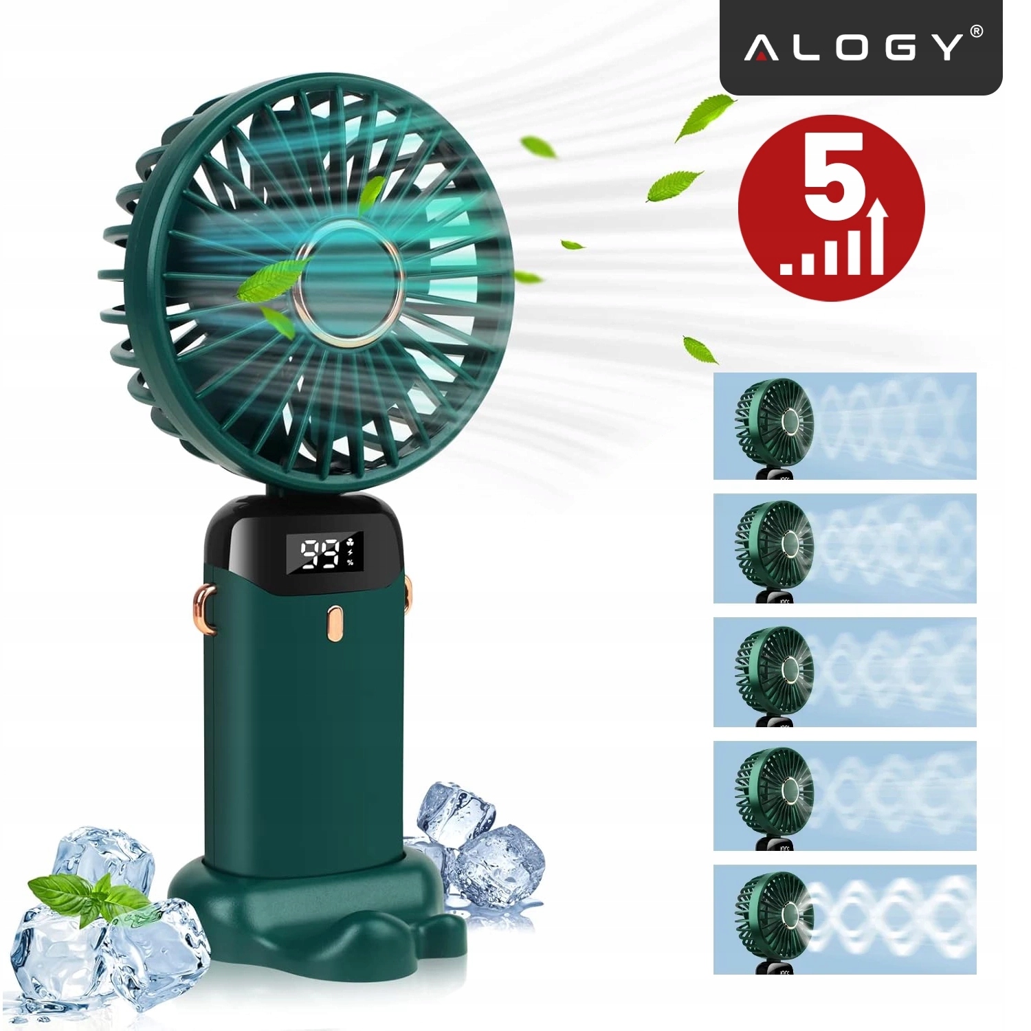 ▶️ Бездротовий, портативний і настільний ручний вентилятор, з тримачем телефону, USB-C для зарядки, батарея 18650, Alogy CoolBreeze™ – зелений